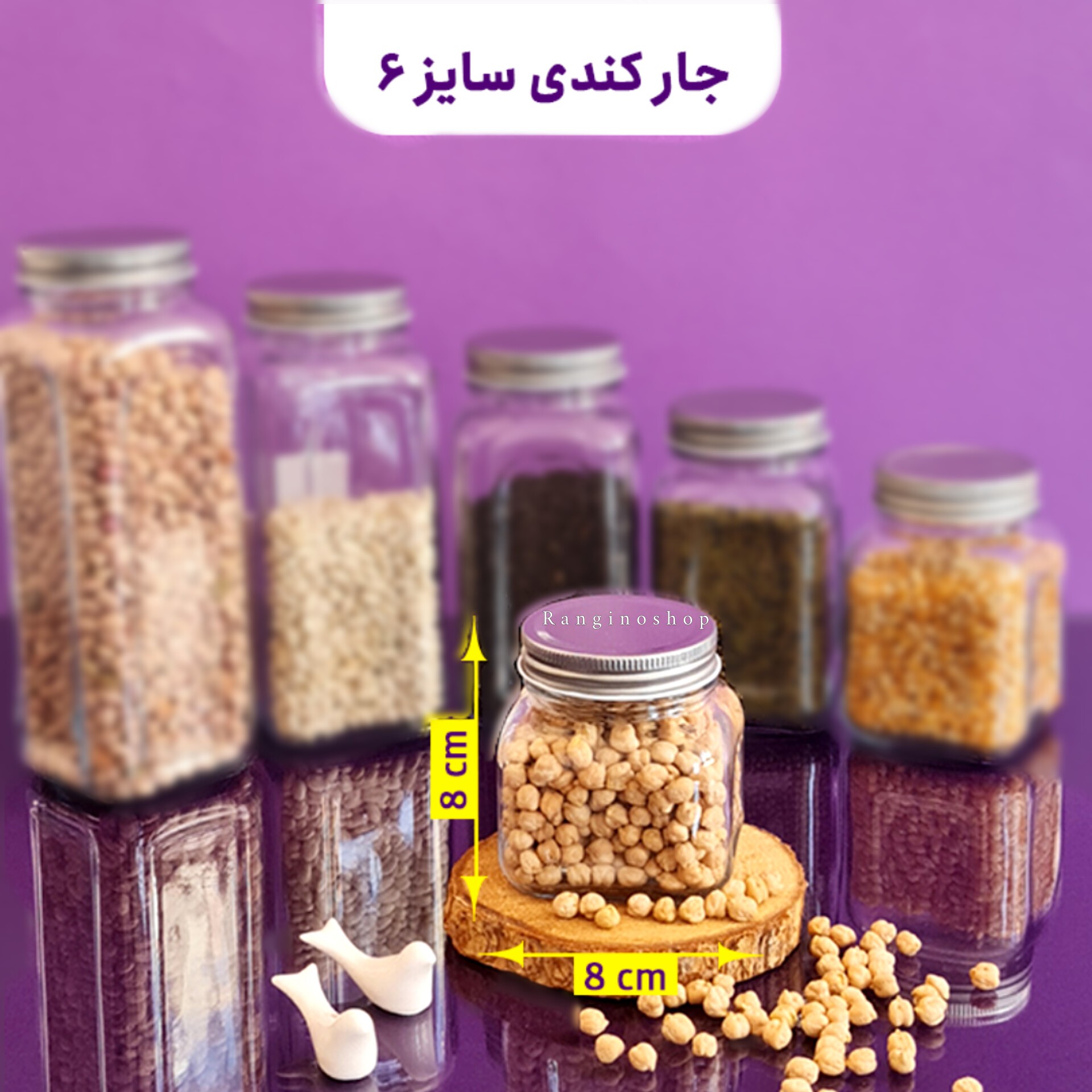 جار و بانکه شیشه ای چهارگوش 8 سانتی مدل کندی مبلمونسرا مدل 291989