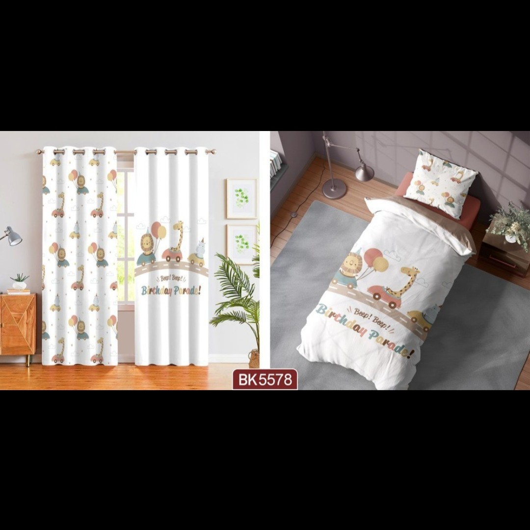 ست اتاق کودک طرح حیوانات و ماشین روتختی و پرده مبلمونسرا مدل 244775