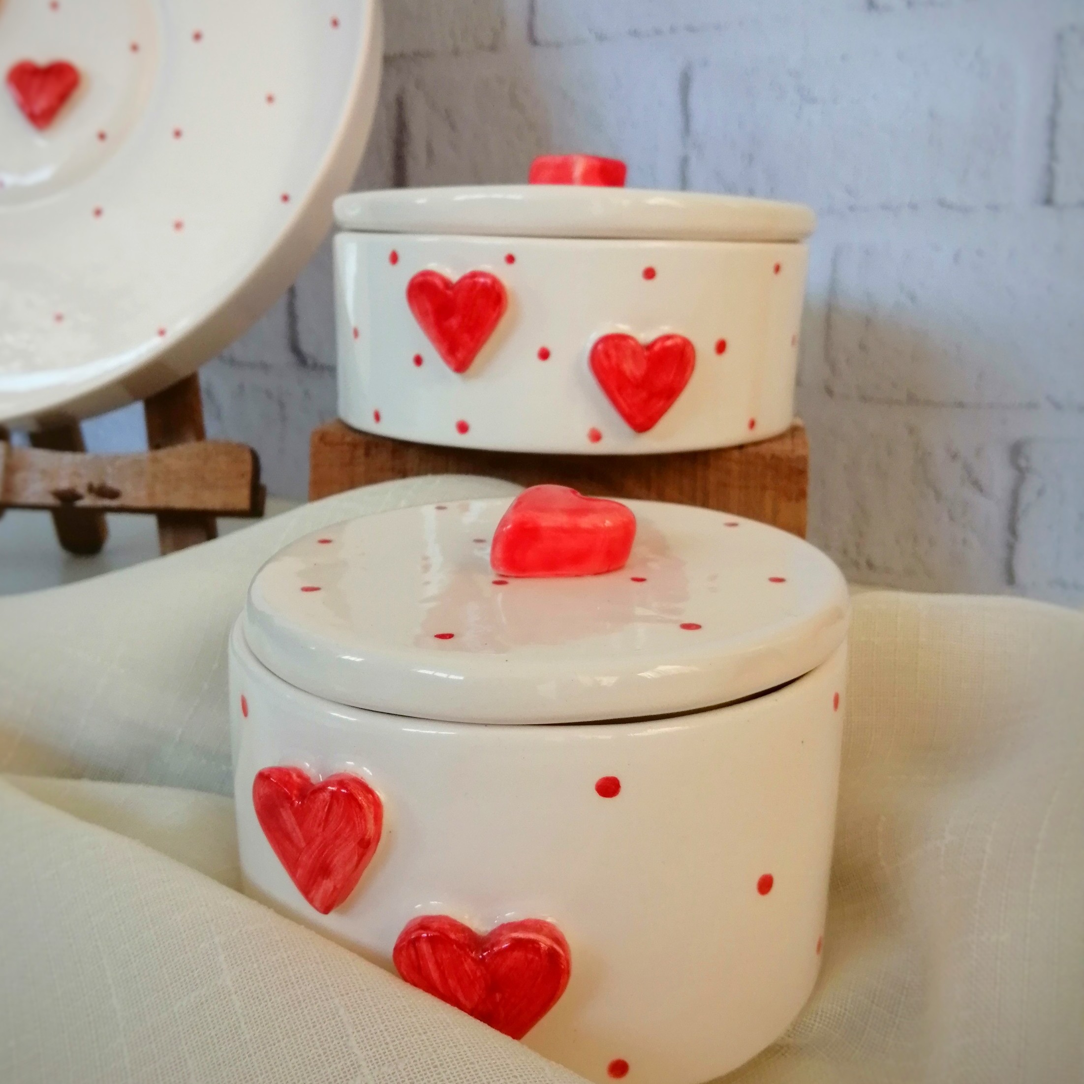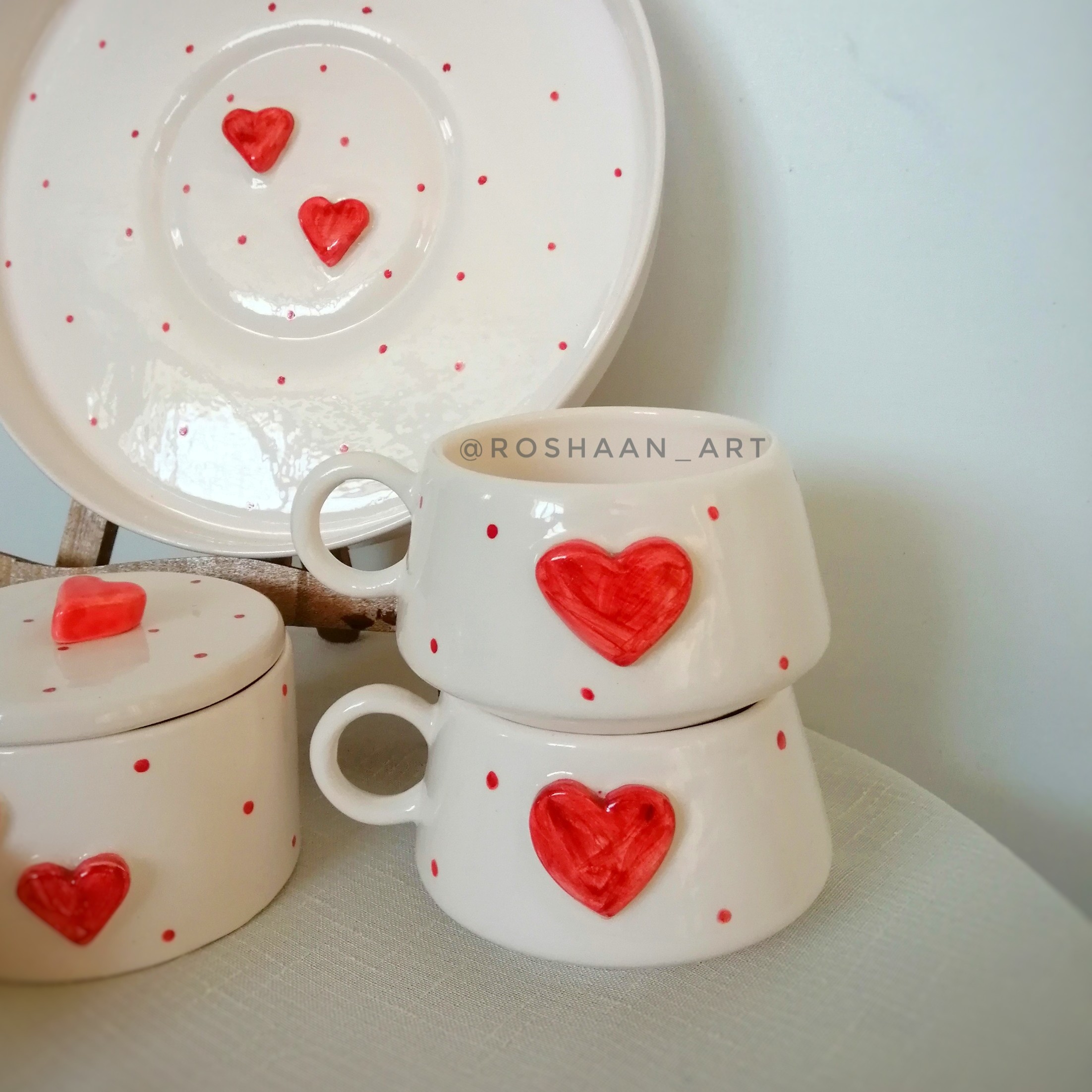 چایخوری قندون ماگ فنجون شکلاتخوری جهیزیه خالخالی قلبی قرمز مبلمونسرا مدل 289287
