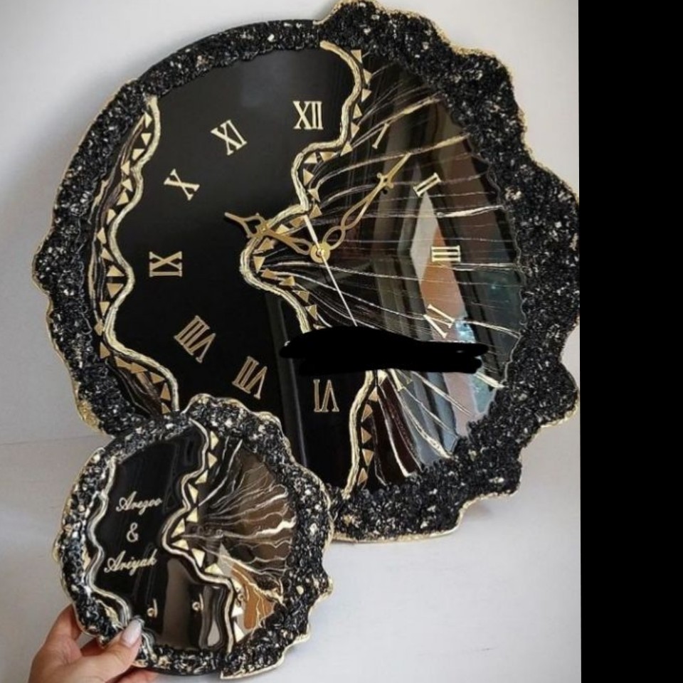 ساعت دیواری مشکی طلائی مبلمونسرا مدل 239387