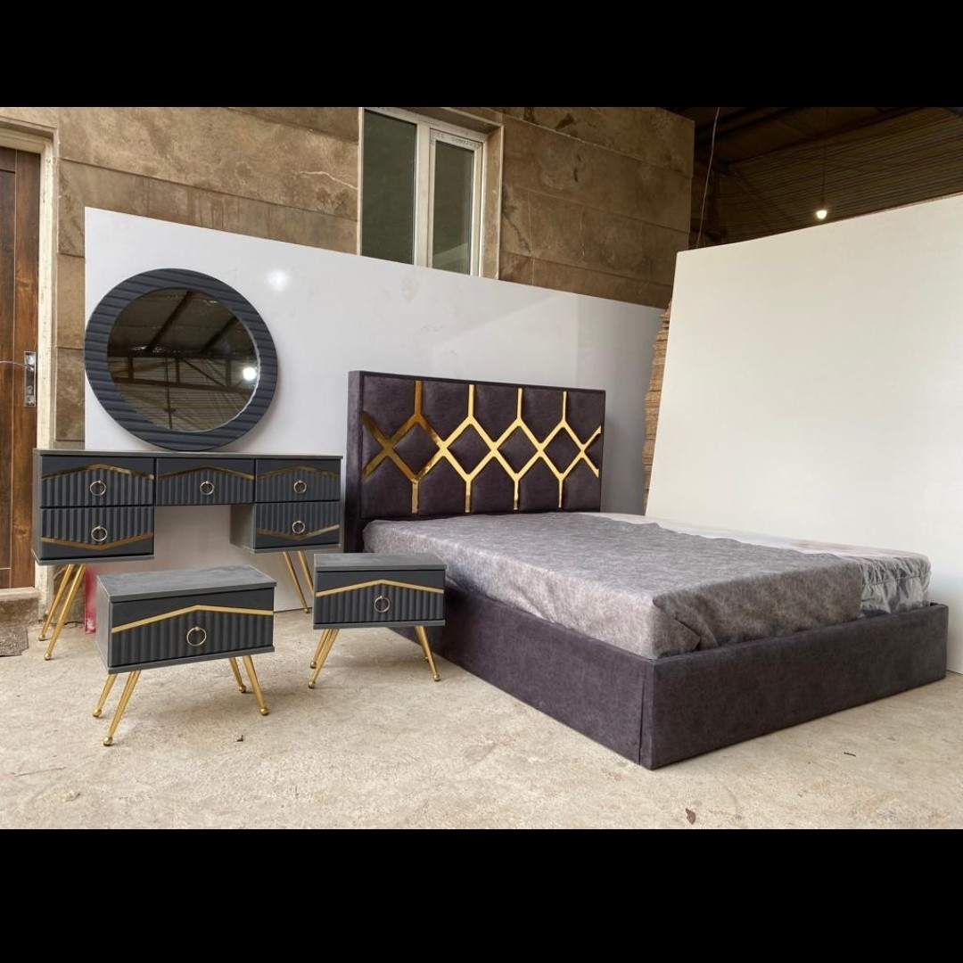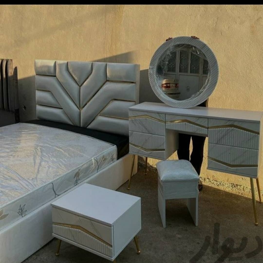 ست شامل دو عدد کفی تخت خواب دو عدد پا تختی کشو دار میز آرایش صندلی میز آرایش تخت خواب دو نفره ارسال بصورت پس کرایه