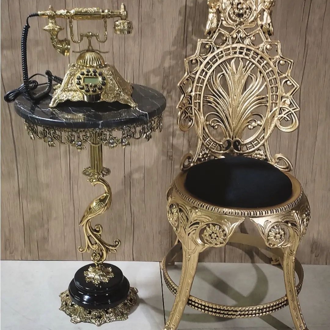 میز تلفن طاووسی برنز ارتفاع 68سانت باکیفیت و زیبا درسه رنگ سنگ مشکی،سفید،سبز مبلمونسرا مدل 222263