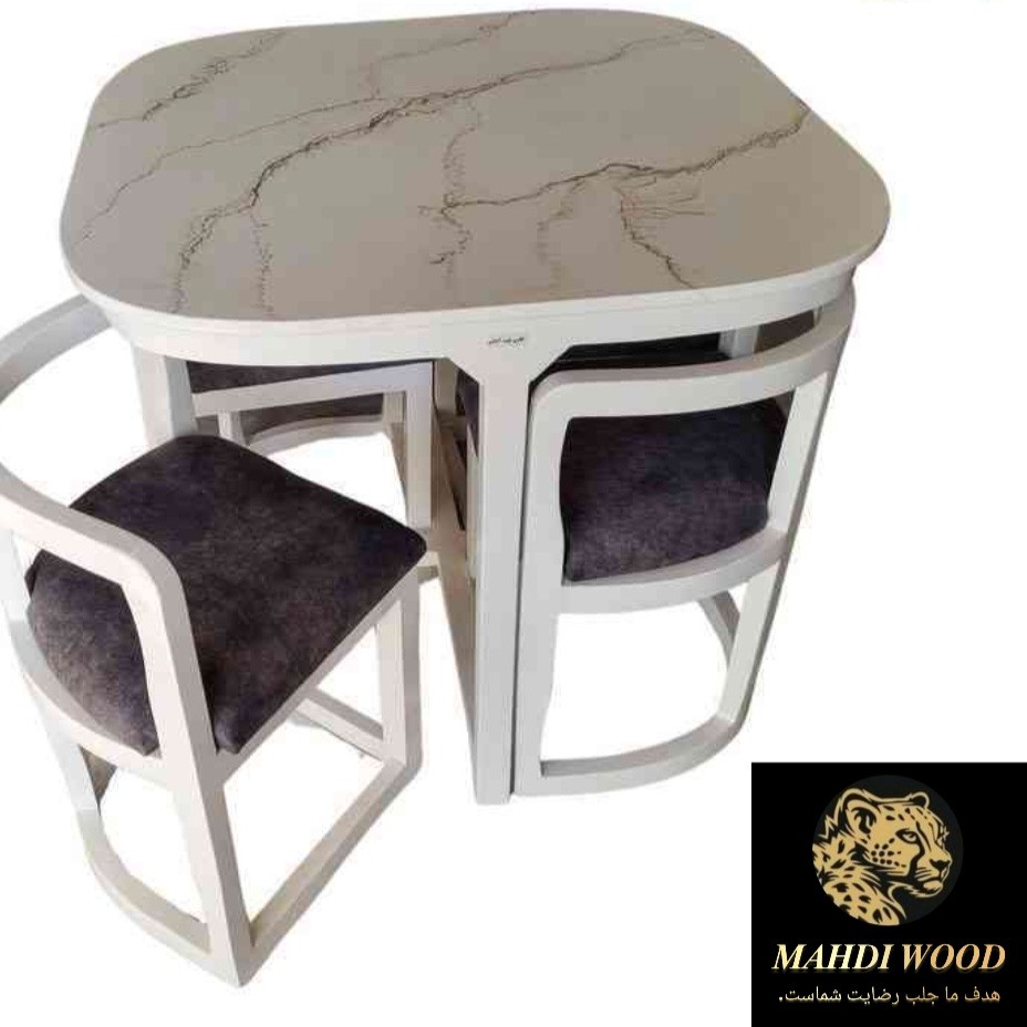 قیمت مندرج میز و صندلی ناهار خوری چهار نفره با پارچه ی مازراتی است. سرویس شش نفره ی این کار هم موجود است برای گرفتن قیمت پیام دهید. کار رنگبندی پارچه و چوب دارد. چوب با قطر ۵ هستش و مناسب خانه های کمجا هستش.