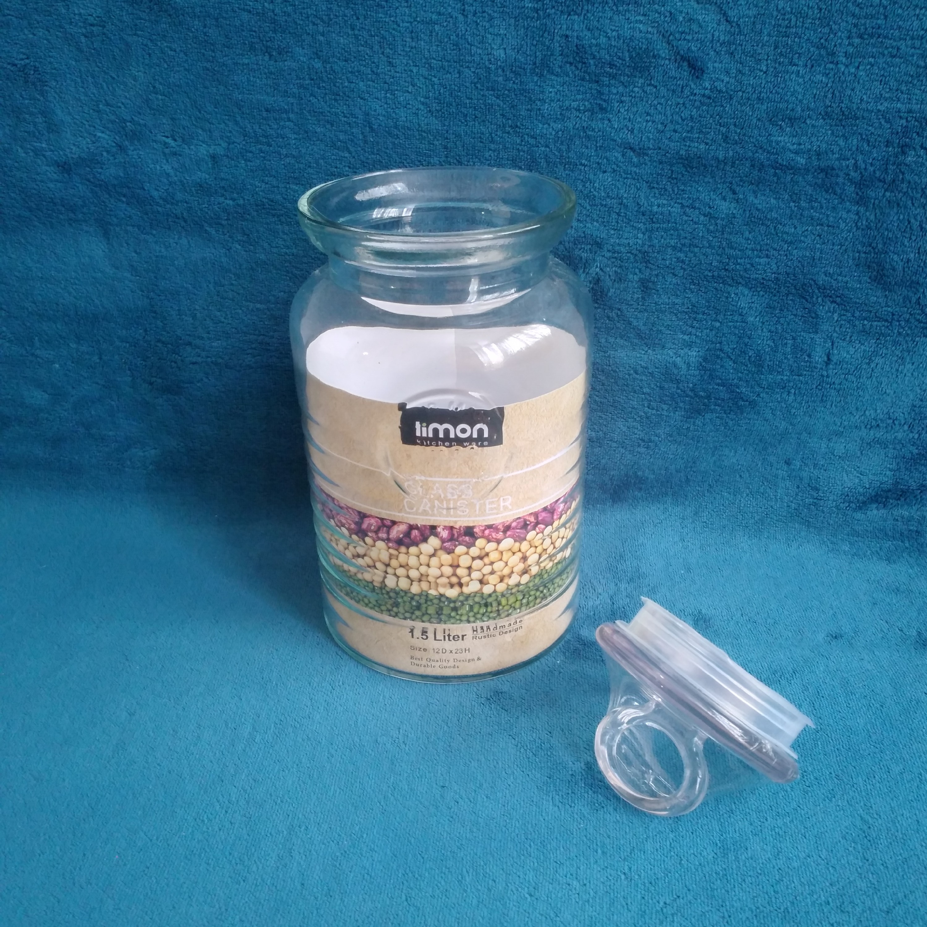 بانکه شیشه ای ۱/۵ لیتر برند لیمون مدل روستیک این بانکه را میتوان برای نگهداری حبوبات، پاستا، لیموعمانی، شکلات و شیرینی های کوچک و حتی از مدل های شیشه ای برای نگهداری سبزی خشک استفاده کرد. این بانکه ها همگی درب دار است و درب آن بر روی بدنه بانکه چفت میشود و مانع از جذب رطوبت میشود. ارتفاع کلی ۲۳ سانت و قطر ۱۲ سانت