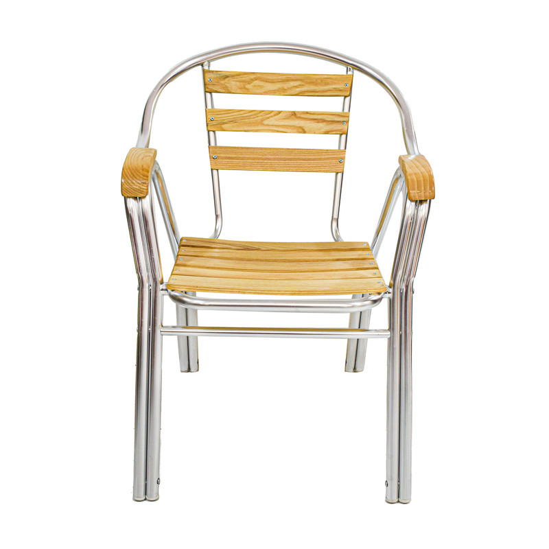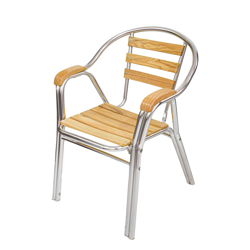 صندلی با طراحی مدرن و زیبا و با دوام می باشد.جنس بدنه از آلومینیوم بدون درز و بادوام می باشد.کف و پشت و دسته ها از چوب فراوری شده با کیفیت بالا و نشیمن بسیار راحت است.عرض مفید نشیمن گاه 40سانتی متر می باشد که باعث راحتی بیشتر آن شده.پایه ها بصورت دبل میباشد که به استحکام صندلی افزوده است.