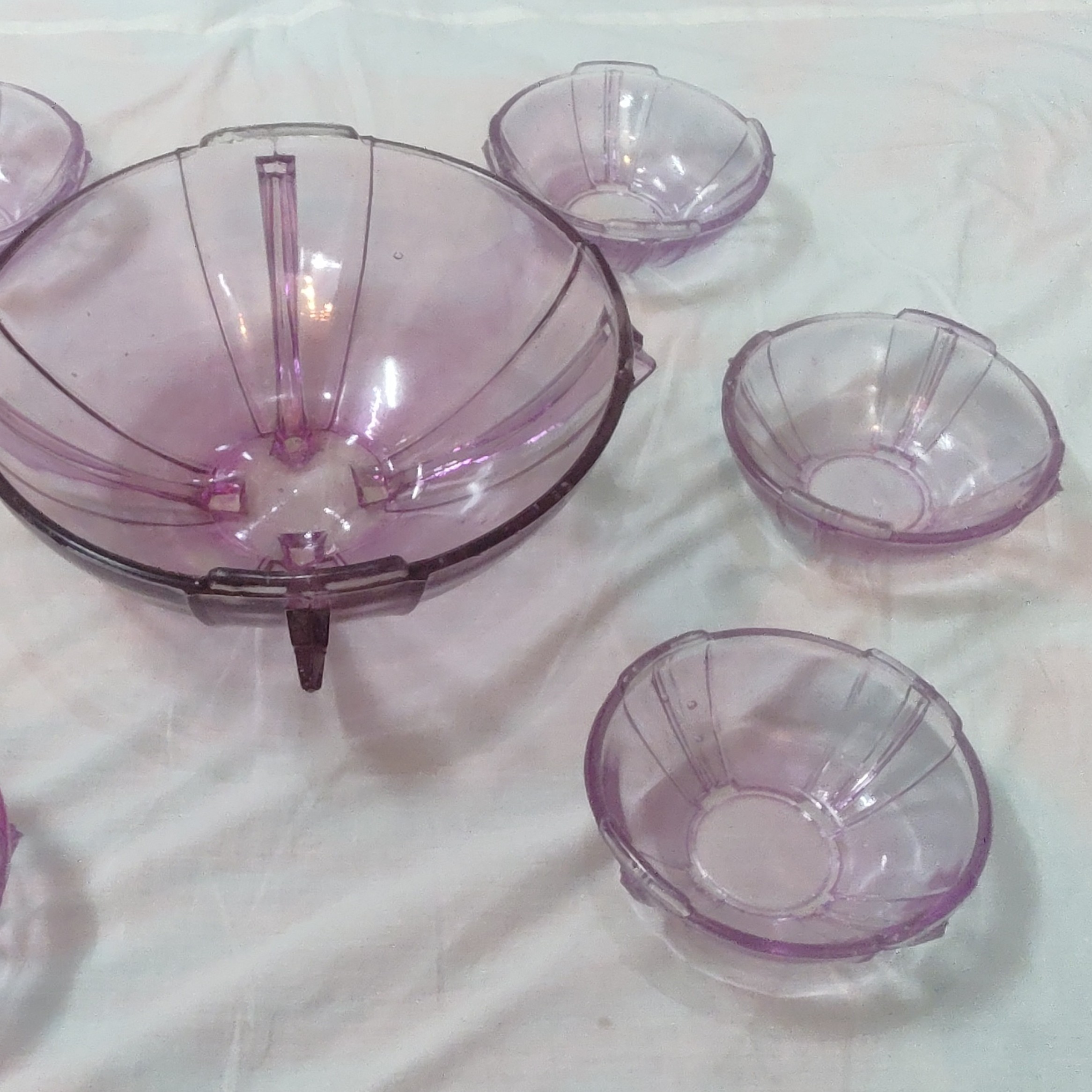 سرویس هفت پارچه قدیمی، شیشهای مربوط به دهه پنجاه، توی انبار مغازه چینی فروشی که حدود 40 سال بسته بوده، فوقالعاده زیبا و کلکسیونی و خوش رنگ مناسب دکور و پذیرایی مناسب خاص پسندها