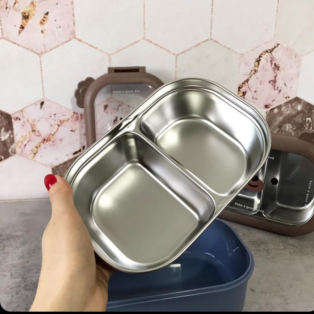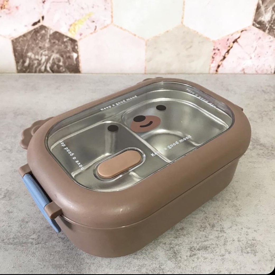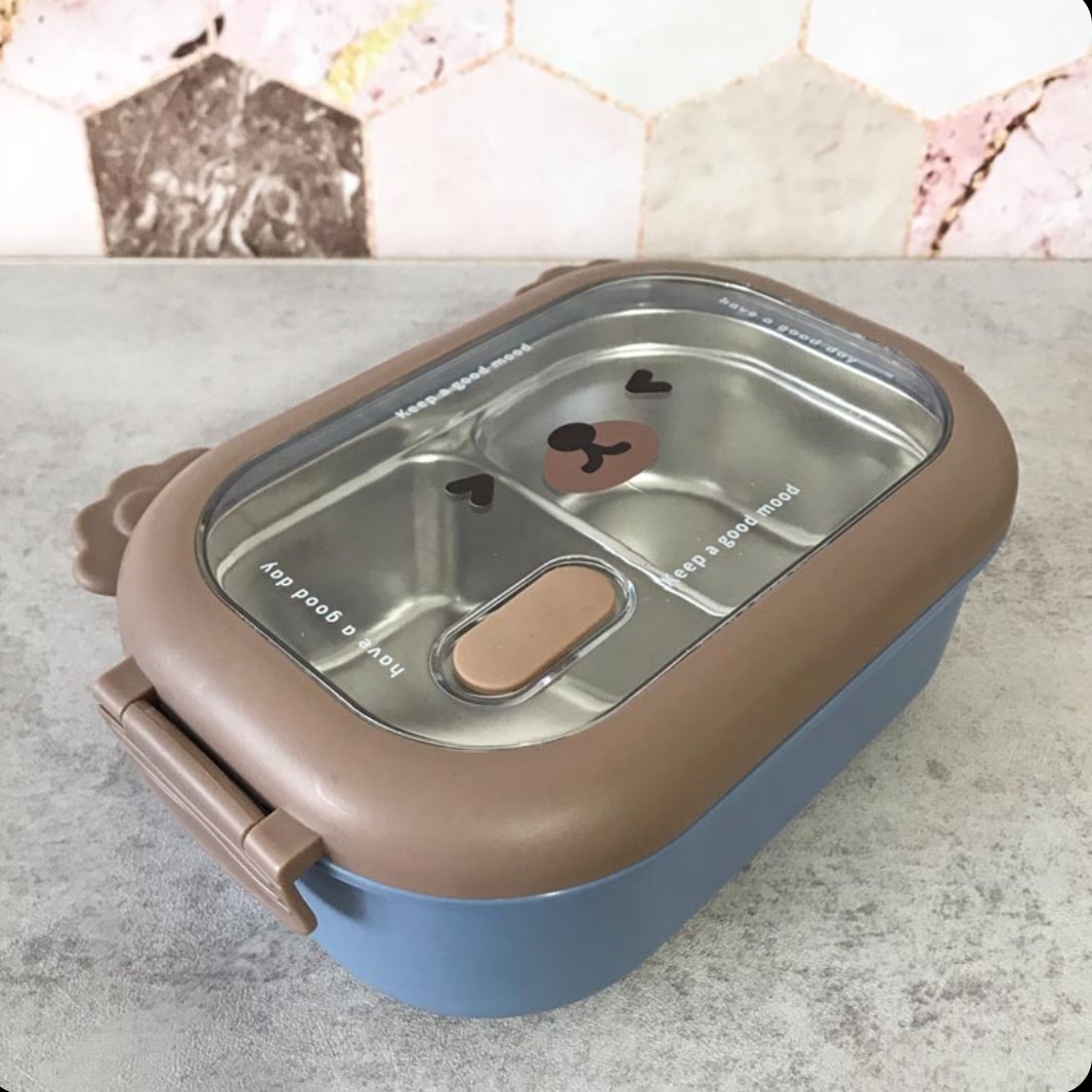 ظرف غذا خرسی لانچ لاکس تدی فاقد موارد مضر BPA free دارای دو نگ آبی و قهوه ای این ظرف غذا دارای قفل میباشد دارای محضظه استیل با کیفیت 304 که محفظه رومیتونید به دلخواه جدا کنید