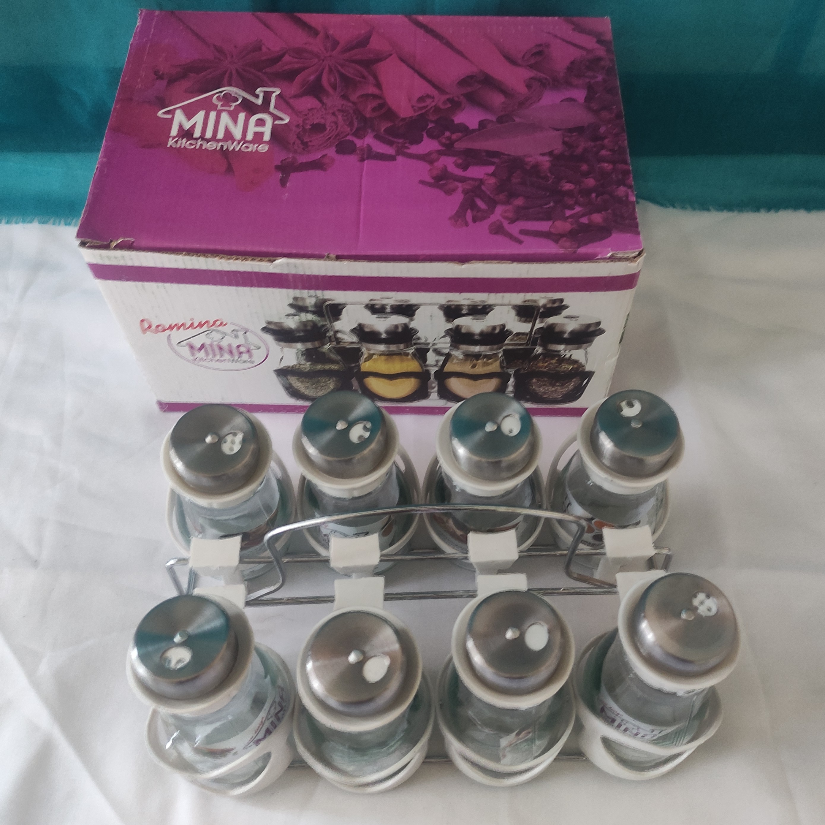 ست جا ادویه 8 پارچه مینا مدل رومینا · جنس بدنه : شیشه · جنس سری : استیل · نحوه بسته شدن : پیچی · امکانات ظاهری : سری قابل تنظیم · قابلیت شستوشو : با دست