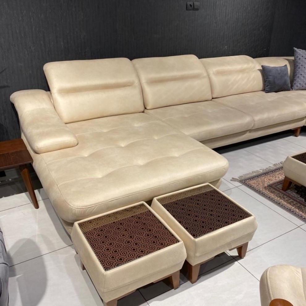 مبل ال هارمونی با ی تیر سه تا نشون بزن همون تعداد نشیمن رو بهتون میده دوتا تخت بهتون میده یک عدد جلو مبلی داره همونی که دنبالش بودی پارچه خارجی درجه یک ارسال به تمام نقاط کشور ظاهری شیک و جذاب امکان چیدمان دلخواه ابعاد 420*320 سانتی متر طول لاوست 190 سانتی متر کلاف اصلی چوب نراد روس و فلز دسته تک نفره از چوب راش گرجستان درجه یک توجه؛تک نفره قیمتش جداس نشیمن، دسته و تکیه گاه اسفنج 35 کیلویی یورولوکس پشت سری مکانیزم پارچه هانزو ترکیب یک کاناپه 3 نفره + یک کنج + کاناپه 3 نفره بدون دسته + لاوست