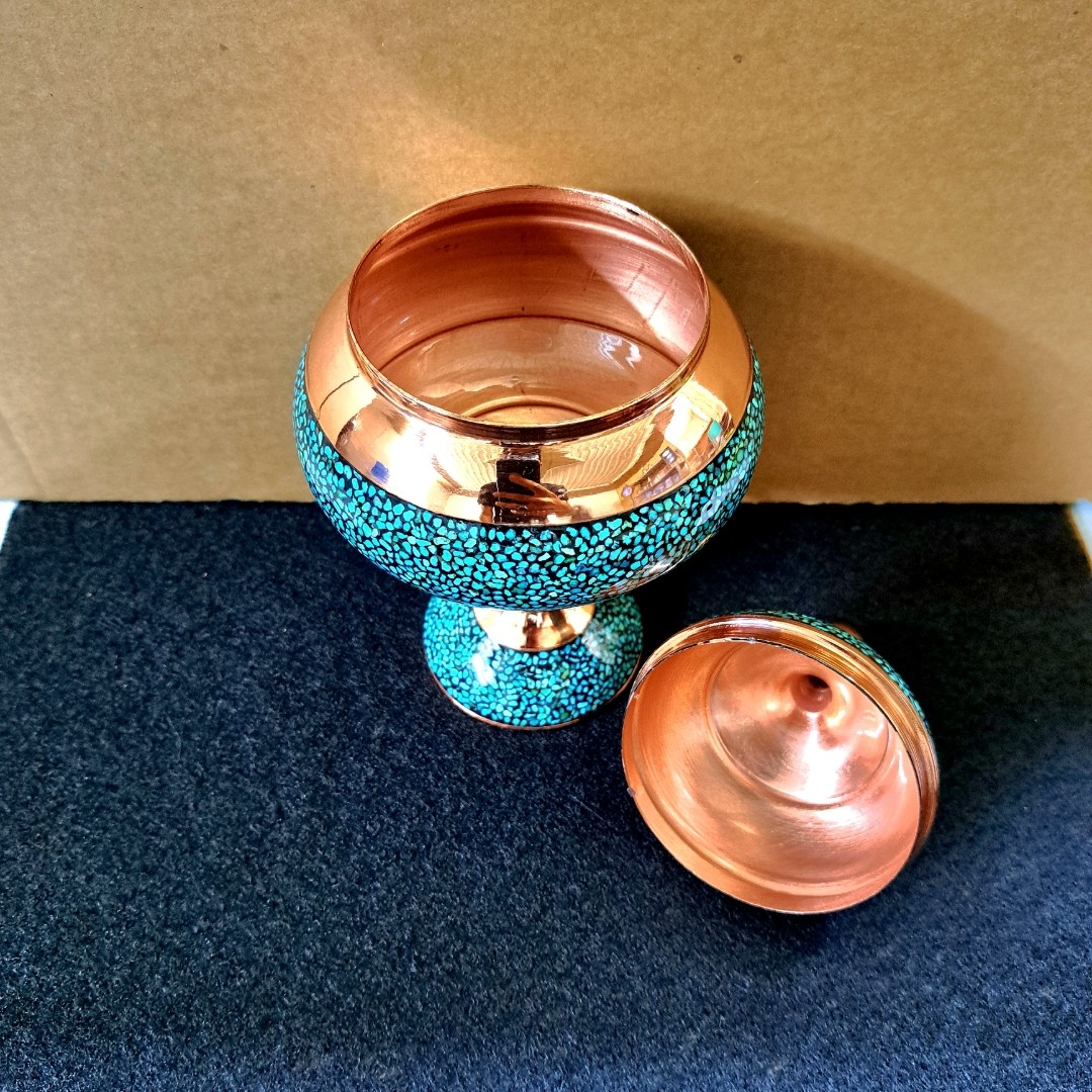شکلات خوری فیروزه کوبی با کیفیت فوق العاده و پایین ترین قیمت نسبت به بازار. فیروزه اصل نیشابور و مس مرغوب اصفهان باعث شده این محصول دارای زیبایی خاصی و منحصر به فرد بشه
