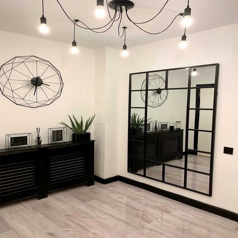 این محصول ساخته شده از پروفیل 2 در 1 سانتی متر میباشد همچنین برای استحکام بیشتر یک پروفیل 1 در 1 در پشت قاب به صورت دوبل جوش co2 داده شده است ، تمامی نقاط اتصال قاب با ظرافت خاصی با جوش co2 به صورت تمیز کار شده است ، همچنین رنگ قاب این محصول به صورت کوره ای و فوق العاده با کیفیت میباشد ، آینه محصول 4 میل بسیار شفاف و با کیفیت سوپرکلییر میباشد .ابعاد محصول با احتساب قاب 180x120 سانتی متر میباشد که نمای روبروی آن پروفیل 2 سانت میباشد.در پشت محصول بالای قاب جای اویز تعبیه شده است که تنها با یک پیچ قابل نصب میباشد همینطور میتوانید آن را به دیوار تکیه بدهید.