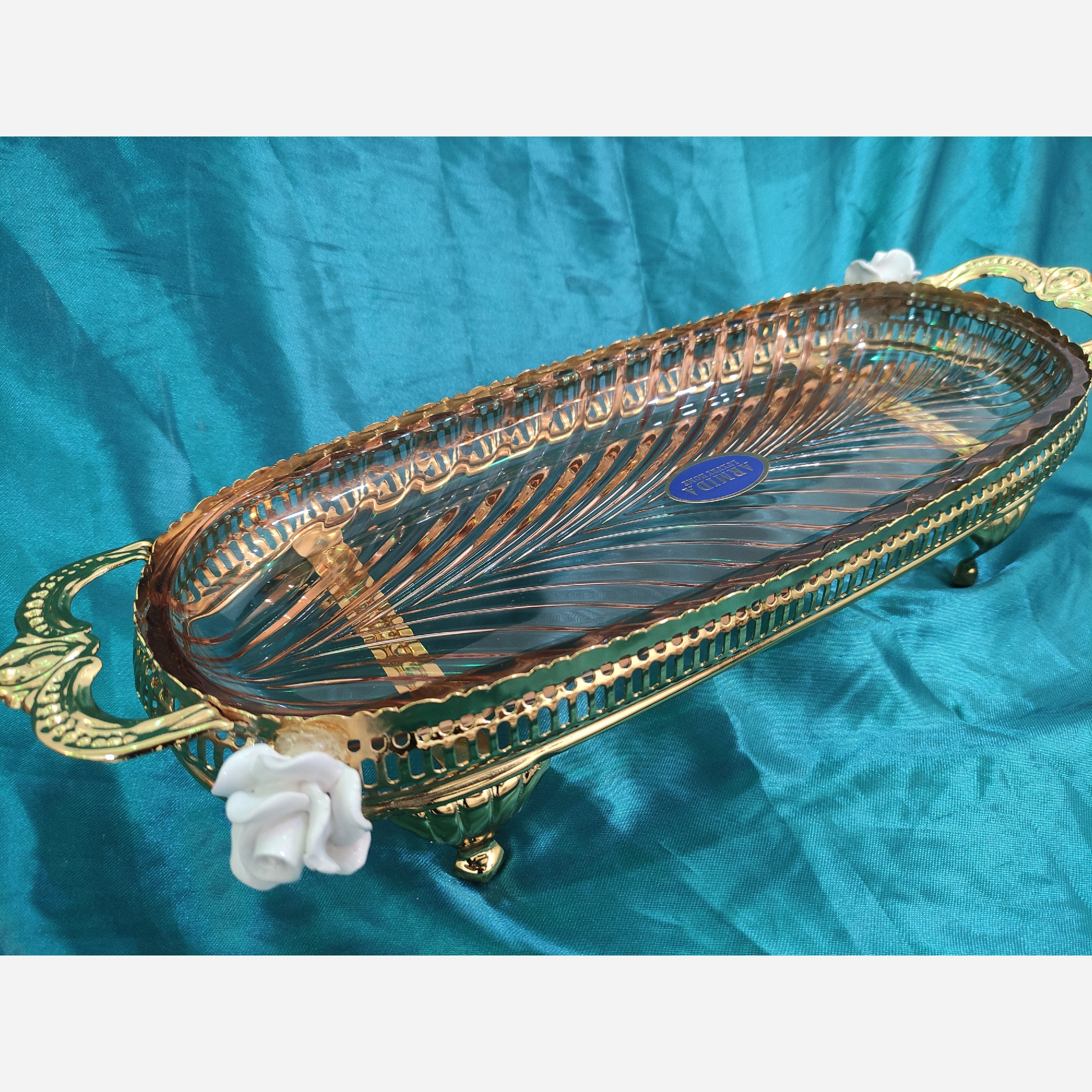 💥 رولت خوری بیضی انگلیسی 💥آبکاری فورتیک بسیار تمیز ، گلهای سرامیک کار شده کنار رولت خوری 💥قابل استفاده انواع مواد خوراکی 💥باکیفیت تر از نمونه های خارجی 💥در ابعاد 33 - 13 سانتیمتر 💥سینی پیرکس و نشکن و مدل دار و قابل بیرون آمدن 💥 قابل شستشو با دست ماشین و ماشین ظرفشویی