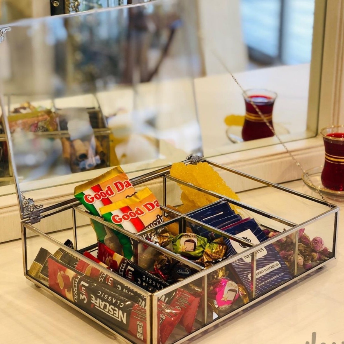 تیبگ برنجی ۶خانه تیبگ شیشه ای در دو رنگ طلایی و سیلور با کیفیت درجه یک دست ساز ر نگ ثابت برند ثمین