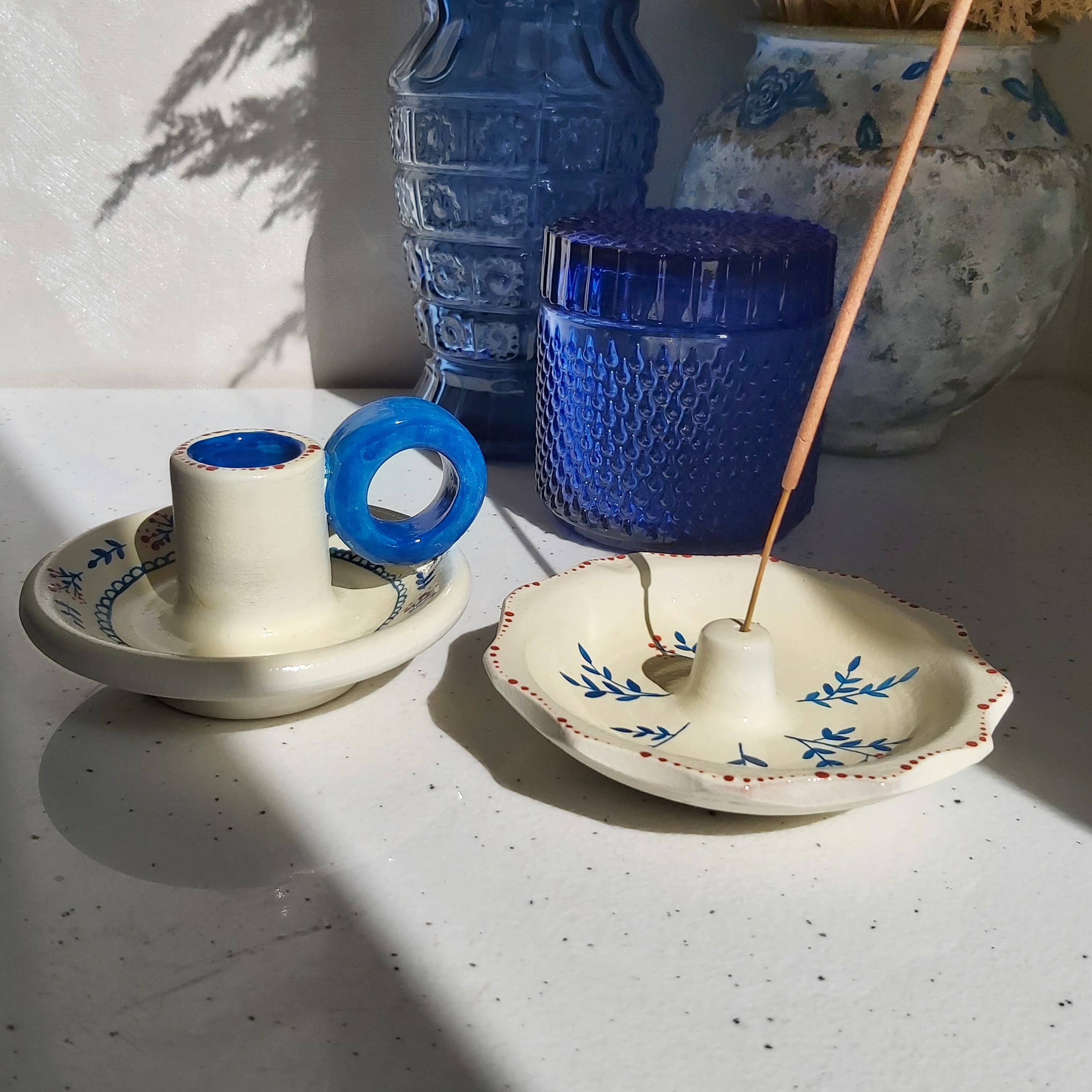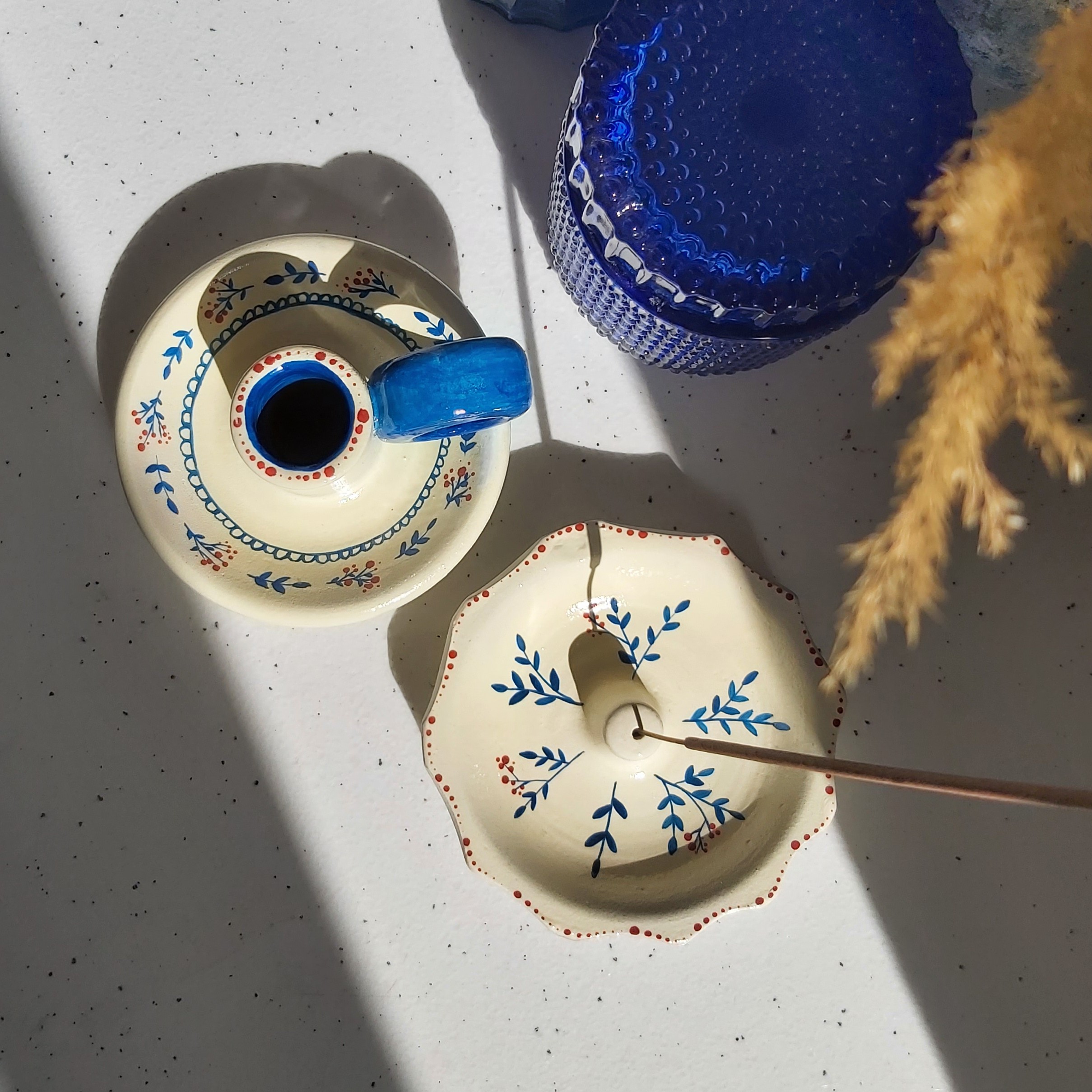جا عودی قطر 11سانتیمتر رنگ کرم و آبی طراحی شده با دست و رنگ ثابت قابل تمیز کردن با دستمال مرطوب مبلمونسرا مدل 284181