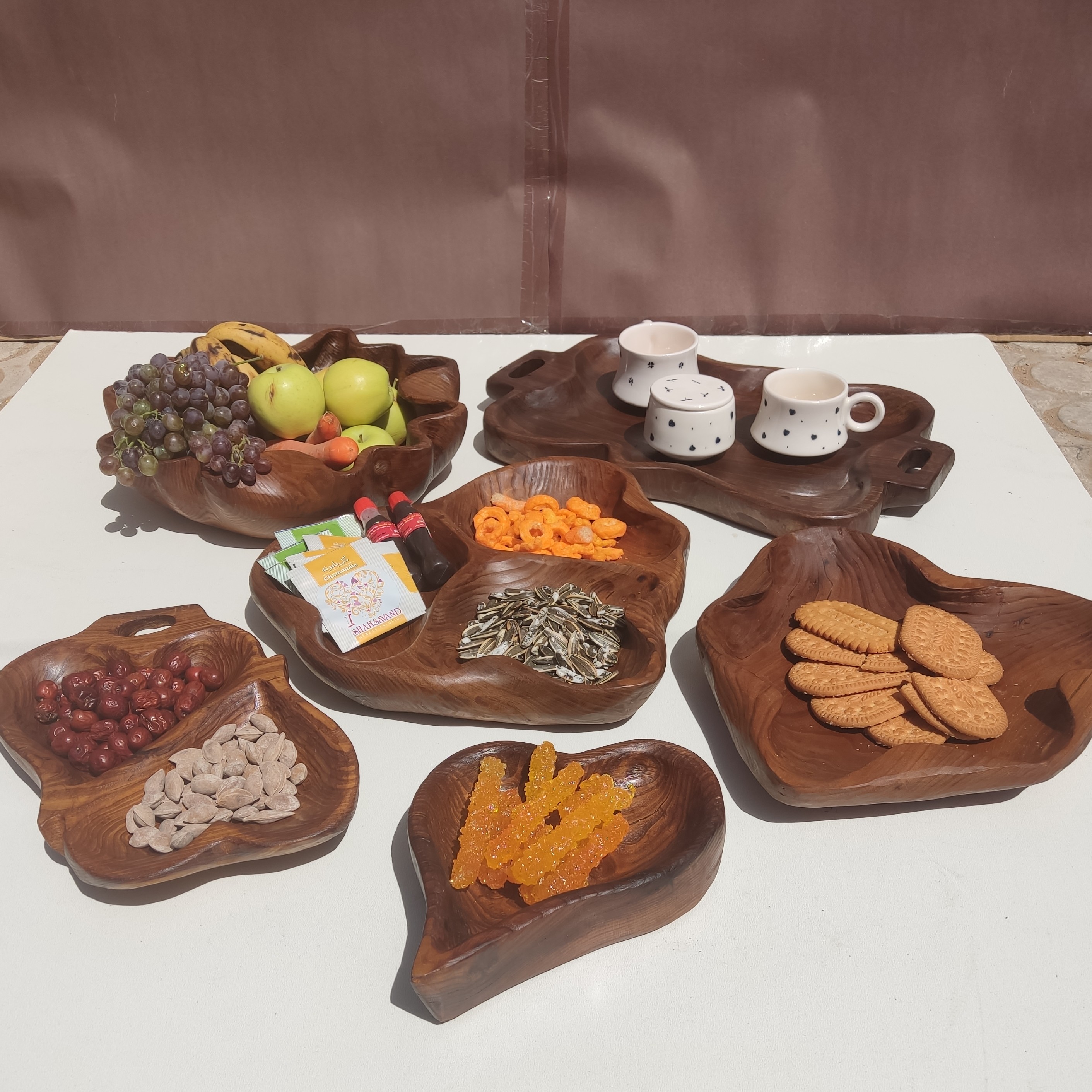 ست چوبی،ظروف چوبی،ست پذیرایی،سینی چوبی،ظرف دفرمه،میوه خوری چوبی،میوه خوری بزرگ مبلمونسرا مدل 277050