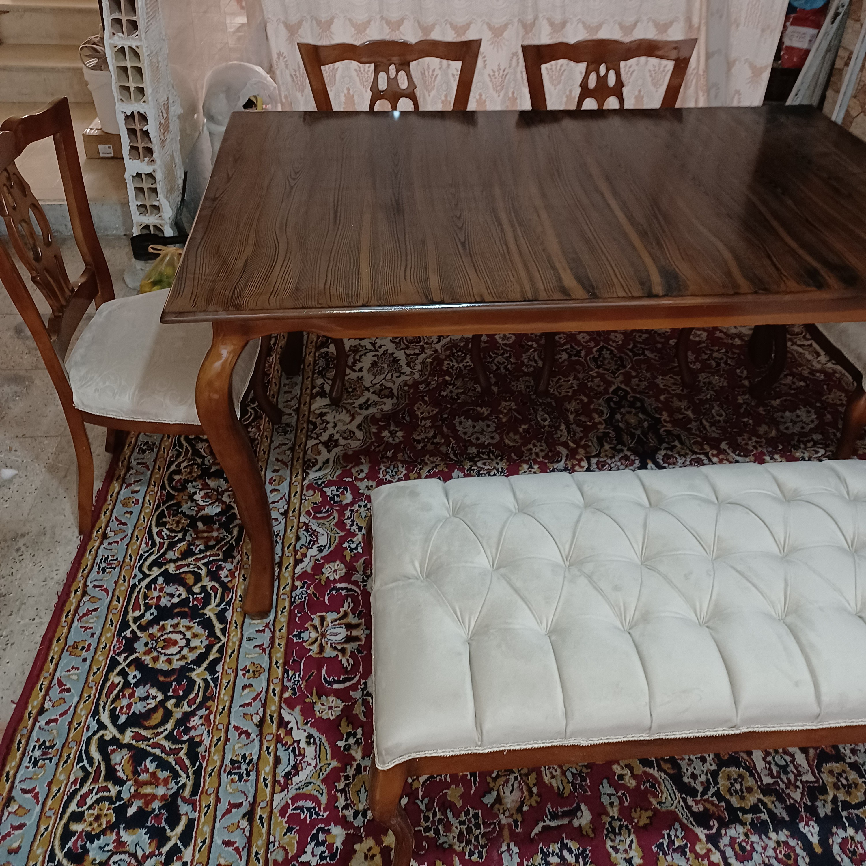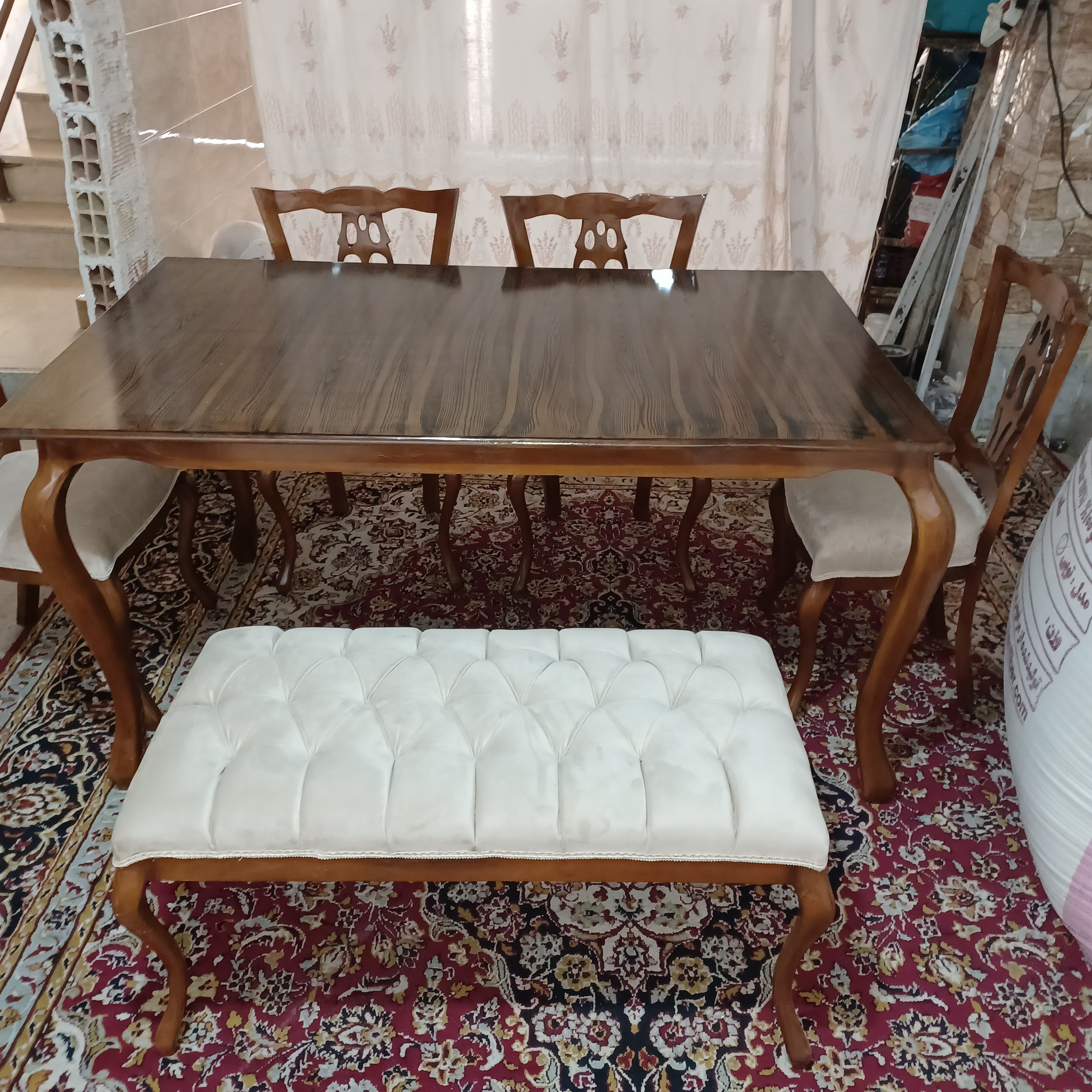 این سرویس تمام چوب راش میباشد ۶ نفره ۴ عدد صندلیویک نیمکت دو نفره