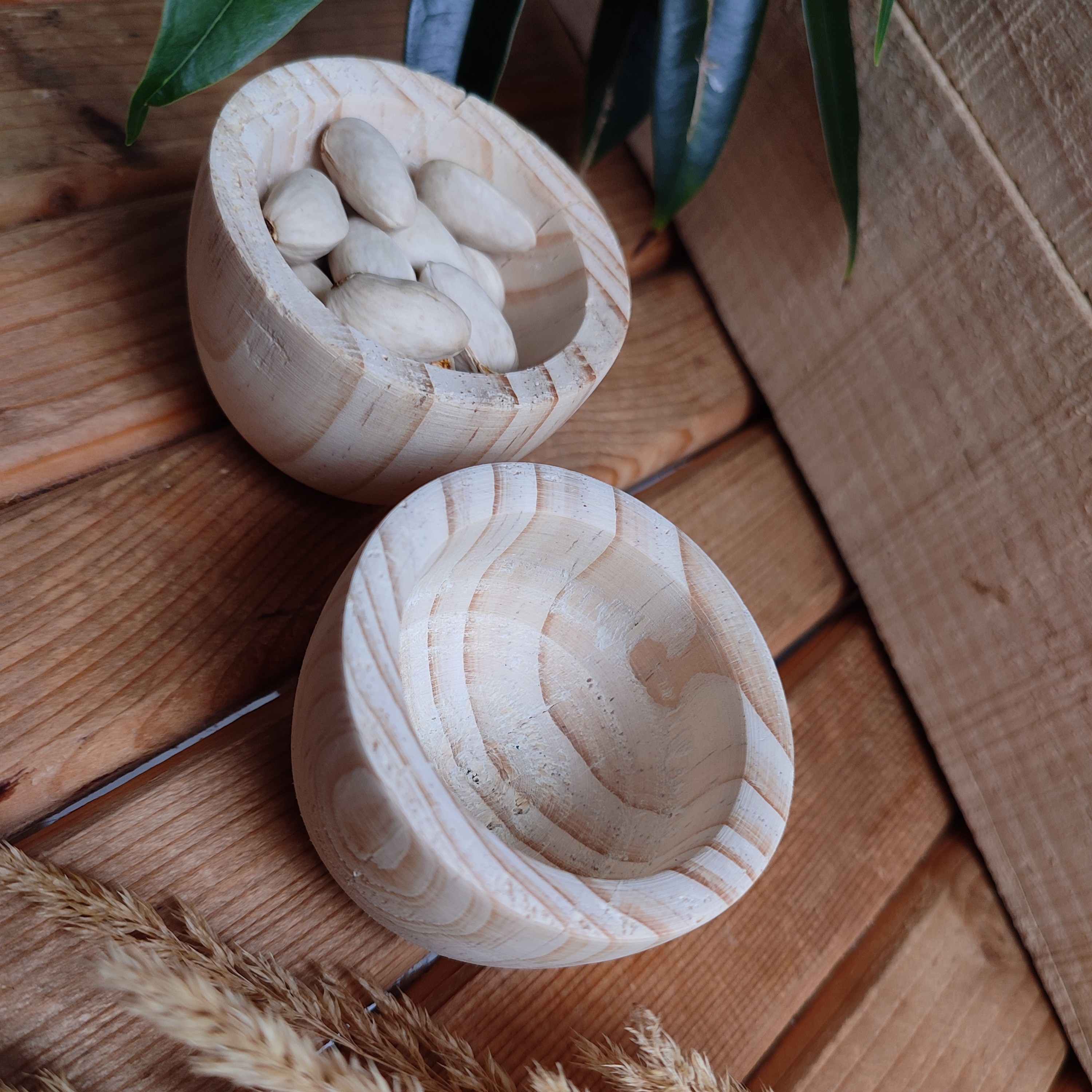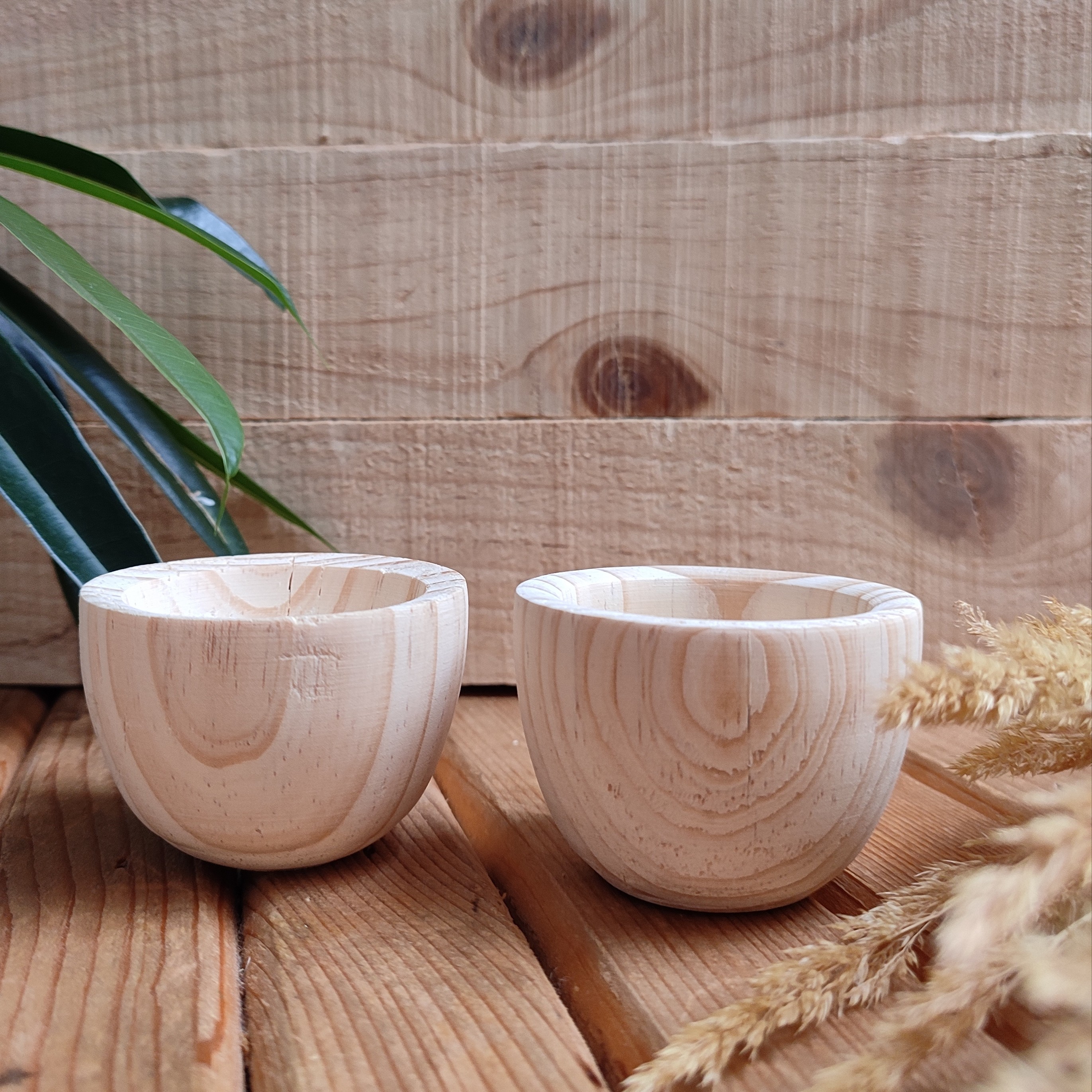 کاسه چوبی مجموعه دو عددی ساخته شده از چوب روس به روش خراطی خشک تراش ارتفاع کاسه ۷ سانتی متر عمق کاسه ۴ سانتی متر قطر کاسه ۵ سانتی متر