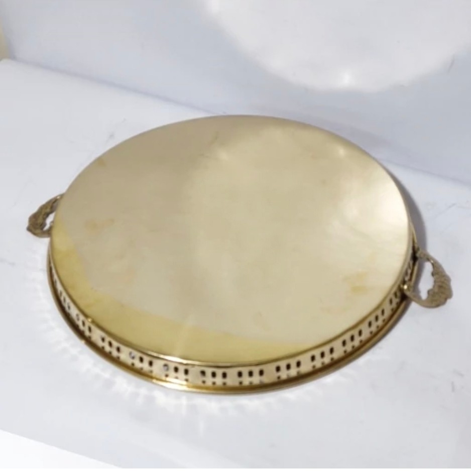 سینی گرد لبه دار تمام برنجی ساخت هندوستان با طرح طاووس سایز کوچک با قطر 33 سانتیمتر از دسته تا دسته و بدون دسته 26 سانتیمتر با سطح کیفیتی درجه یک و با کیفیت بسیار بالا و سنگین مناسب استفاده دائم و قابل شستشو بدون تغییر رنگ ✅ قطر از دسته تا دسته 33 سانتیمتر ✅ قطر بدون دسته 26 سانتیمتر ✅ قابل شستشو