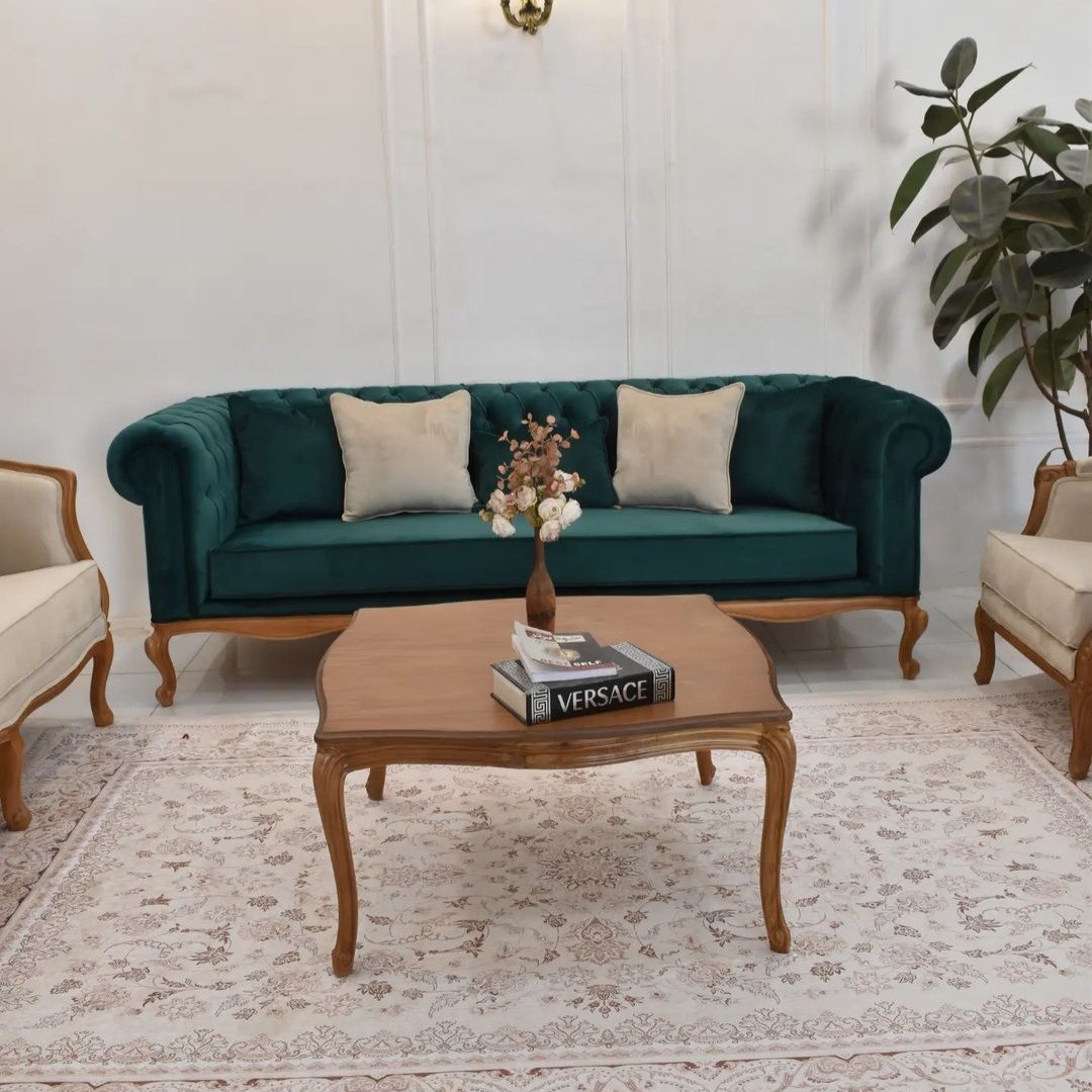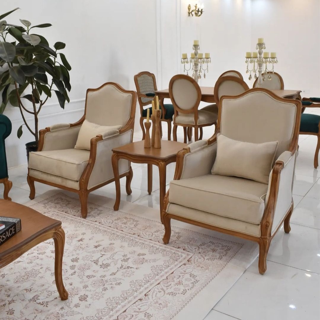 مدل کویین فرانسوی ⚜️کاناپه سه نفره تاج انحنا+چستر کویین+دو عددمبل کویین فرانسوی+جلو مبلی عسلی ⚜️ناهارخوری ۴+۶+۸