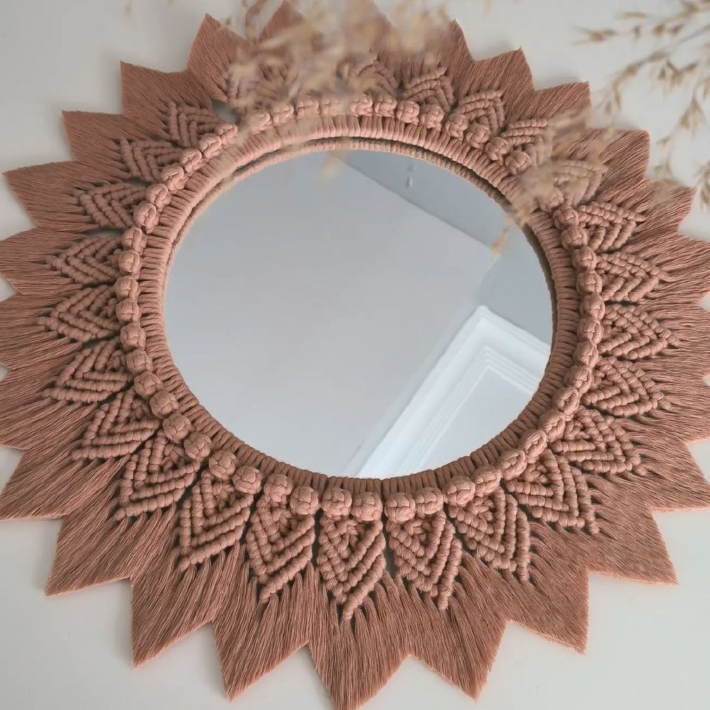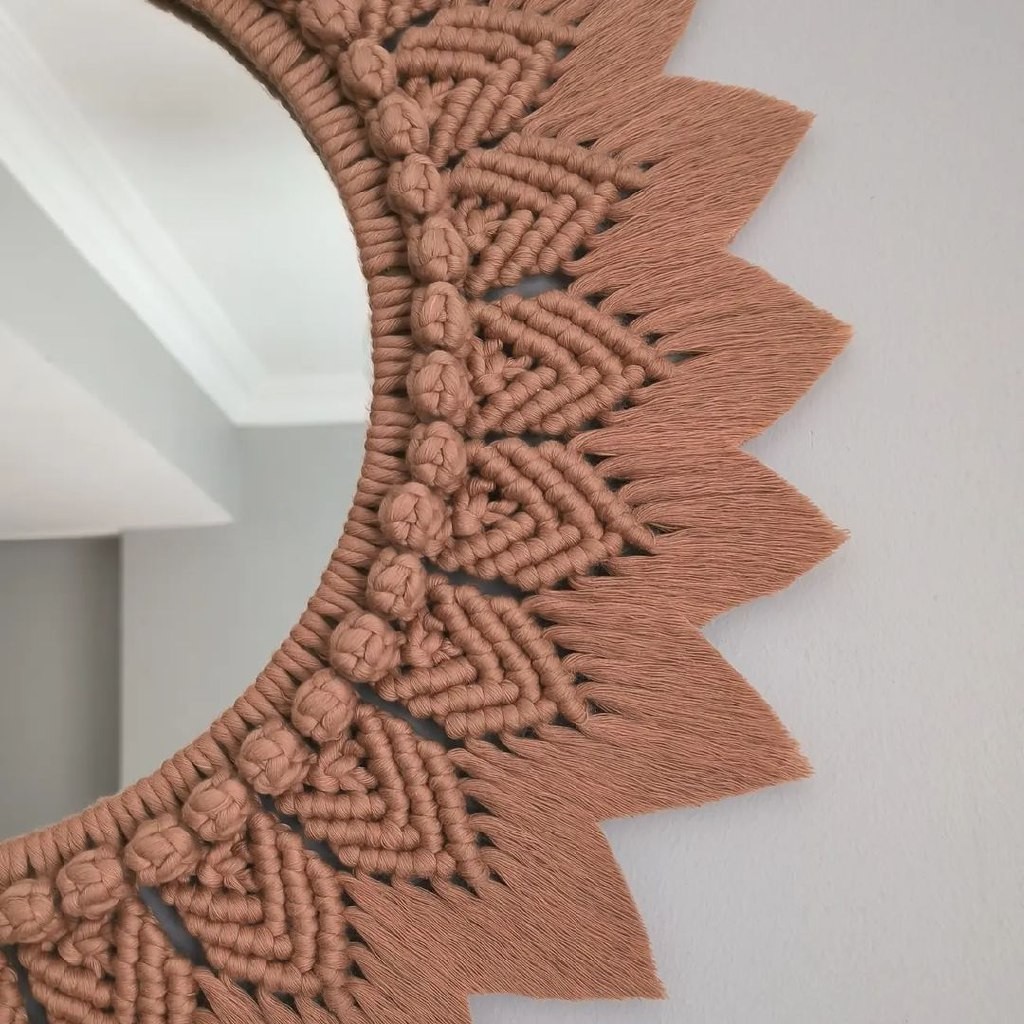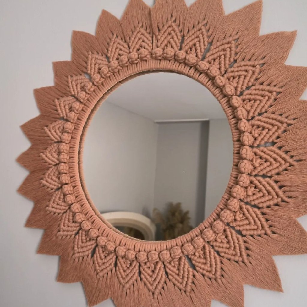 قاب آینه مکرومه دکوراتیو مدل کیهان رنگ دلخواه برند قطر آینه25 سانتی متر مبلمونسرا مدل 260802