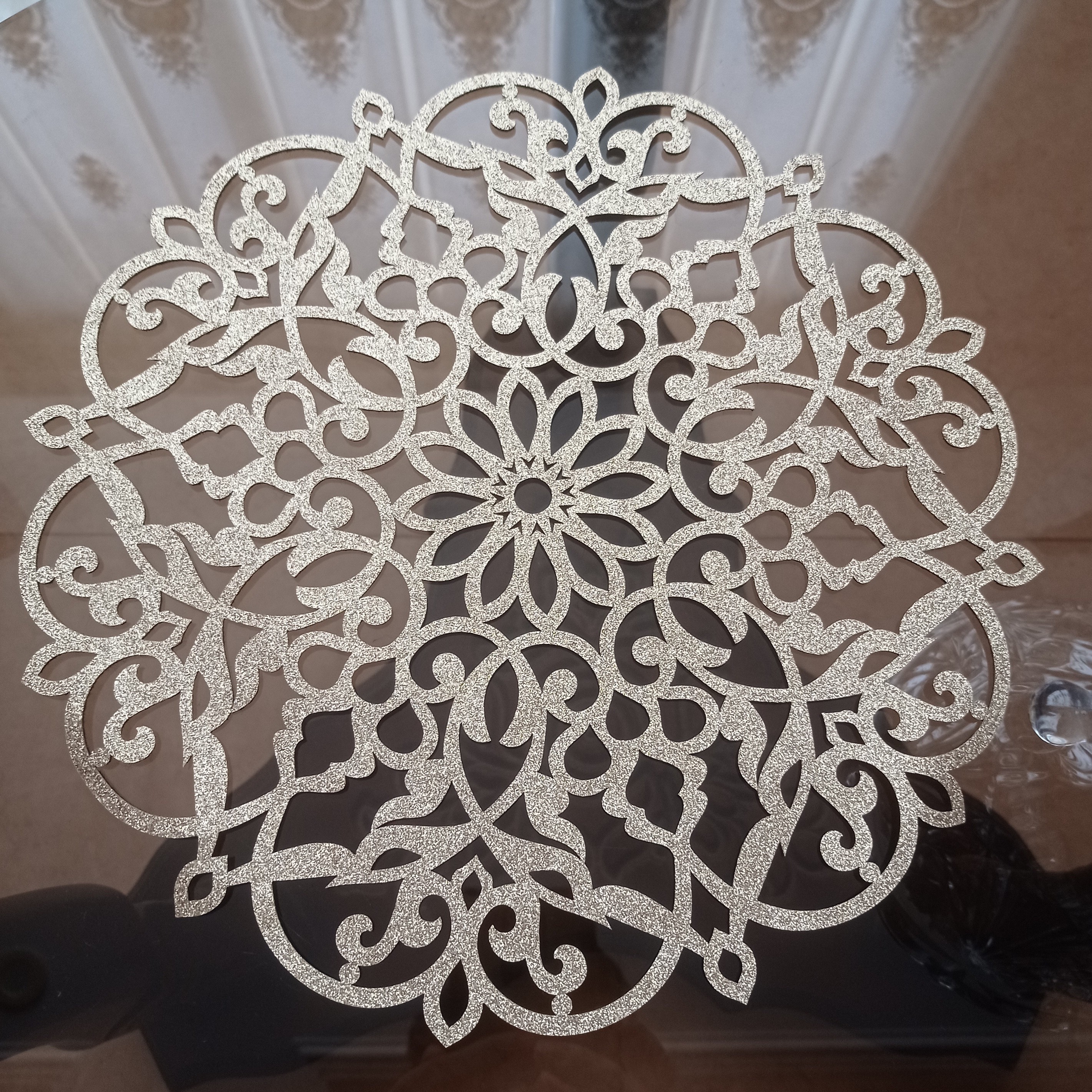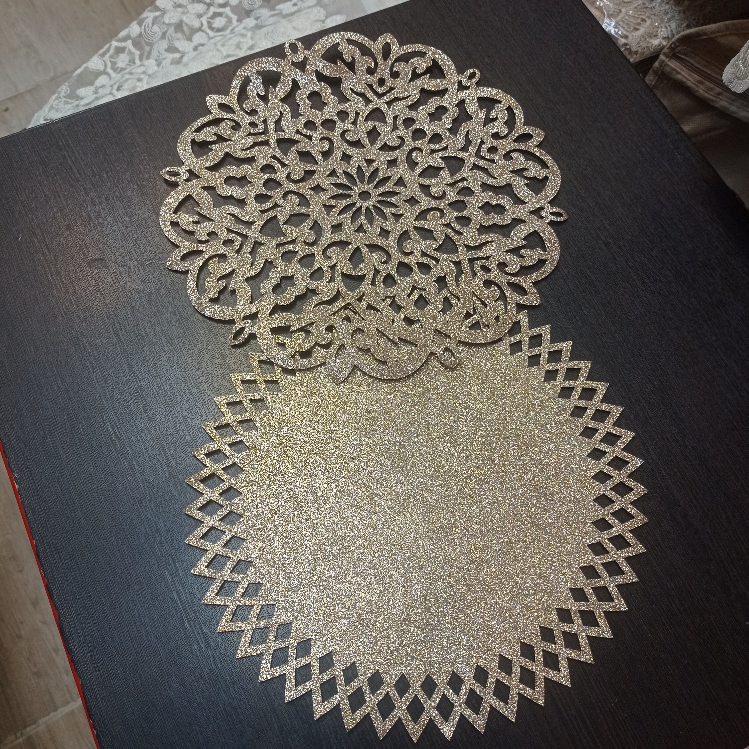 رومیزی و زیربشقابی و توسینی استفاده میشه قابل شستشو با دست بدون ریزش اکلیل در دو رنگ متفاوت طلایی و نقرهای