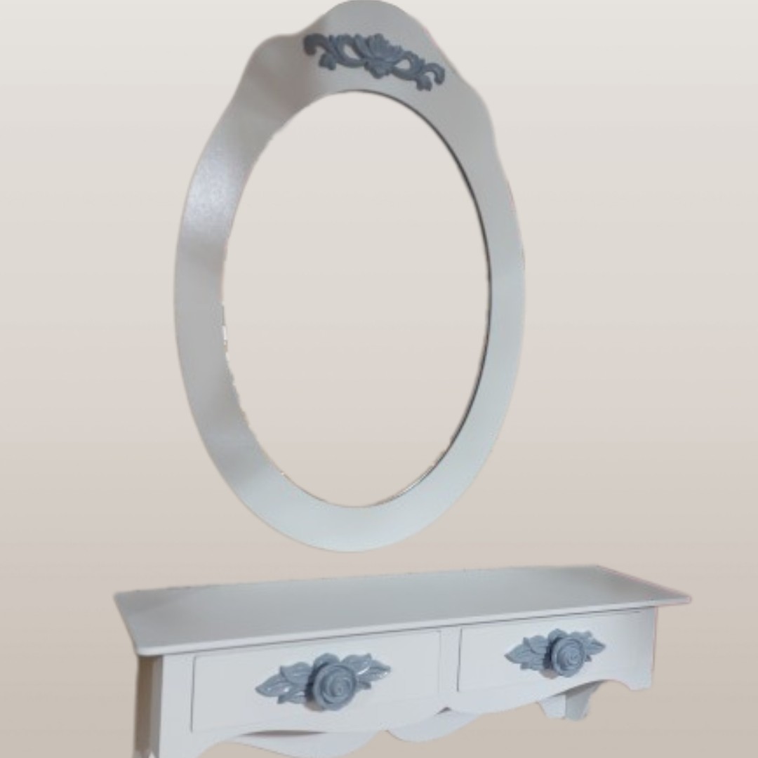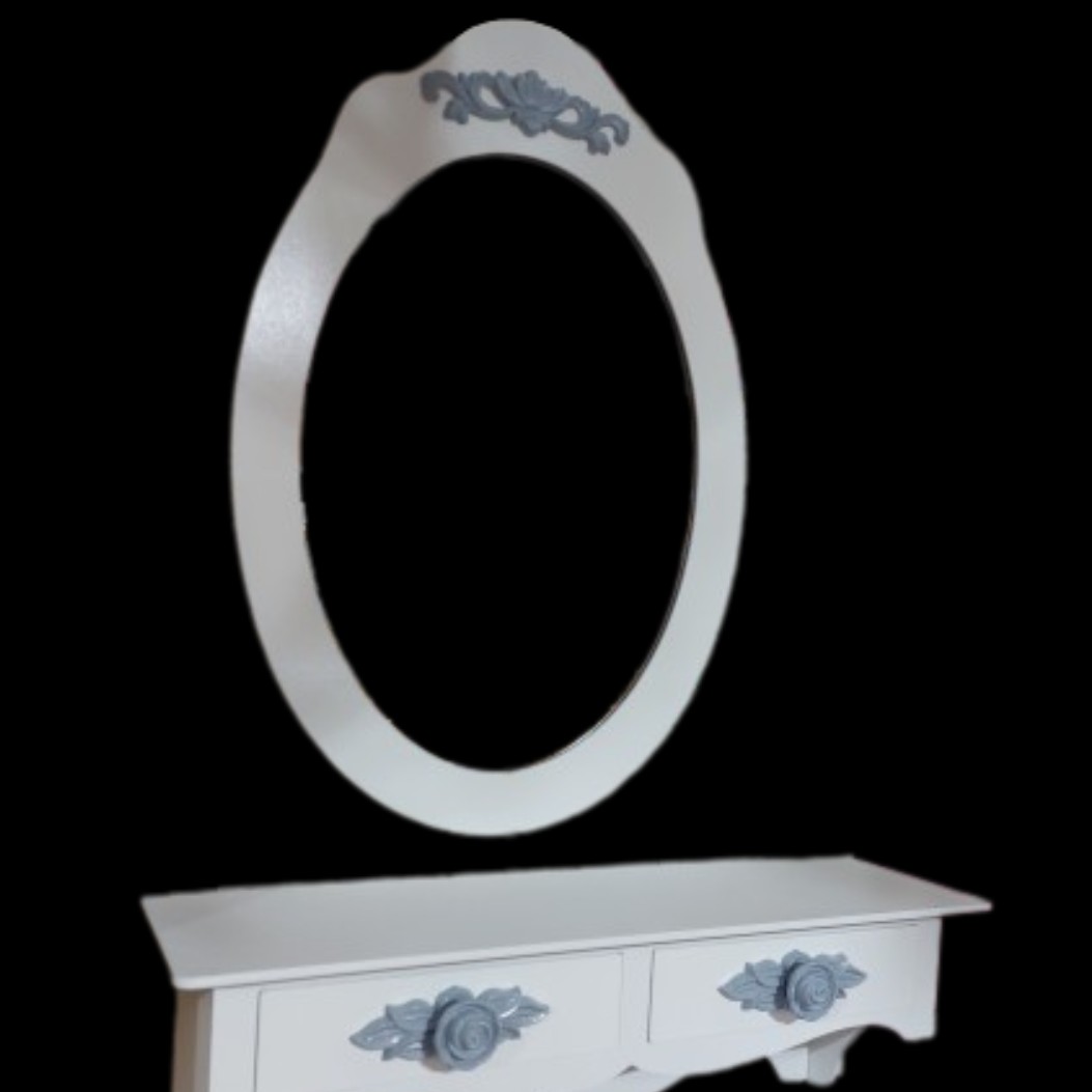 آینه کنسول بیضی سفید طوسی مبلمونسرا مدل 223411
