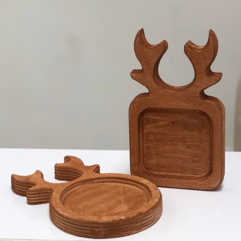 زیر لیوانی چوبی طرح شاخ گوزنی در دو مدل چهار گوش و گرد. وسیله ای کیوت برای ماگ میز کار و آشپزخانه