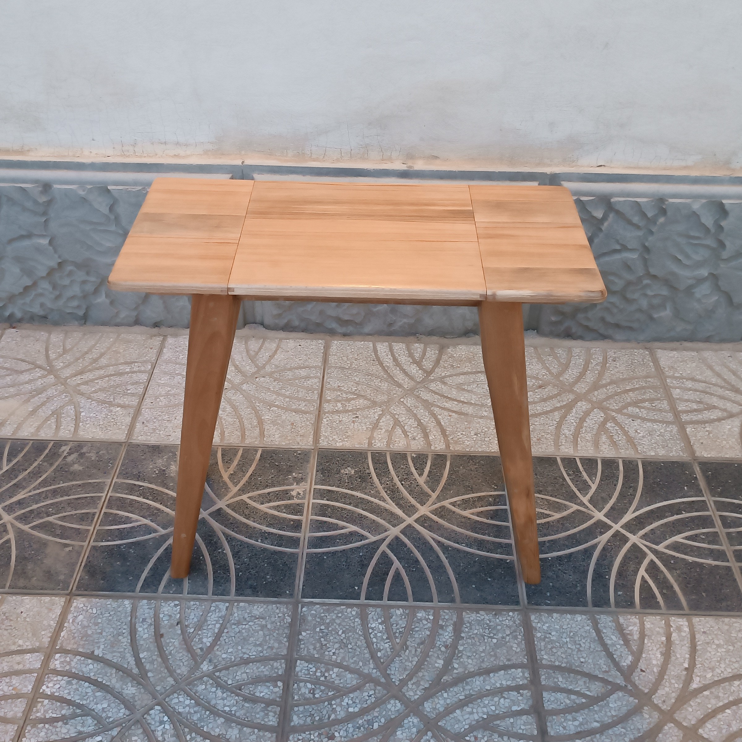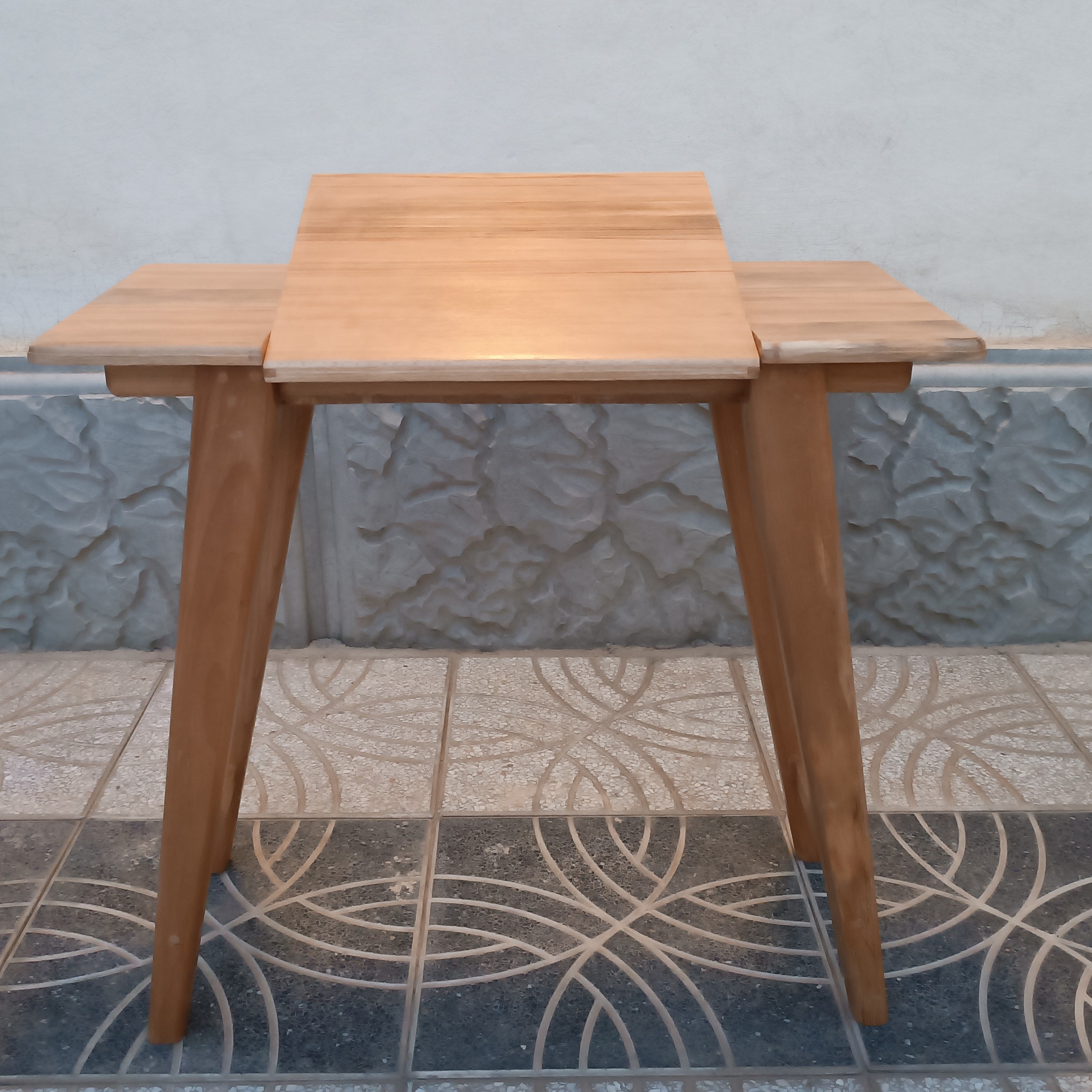 میز تحریر کم جا جهت منازل کوچک. ارتفاع ۶۴ طول ۶۸ عرض ۳۴ صفحه رو متحرک . از جنس چوب راش. پوشش سیلر و کیلر .
