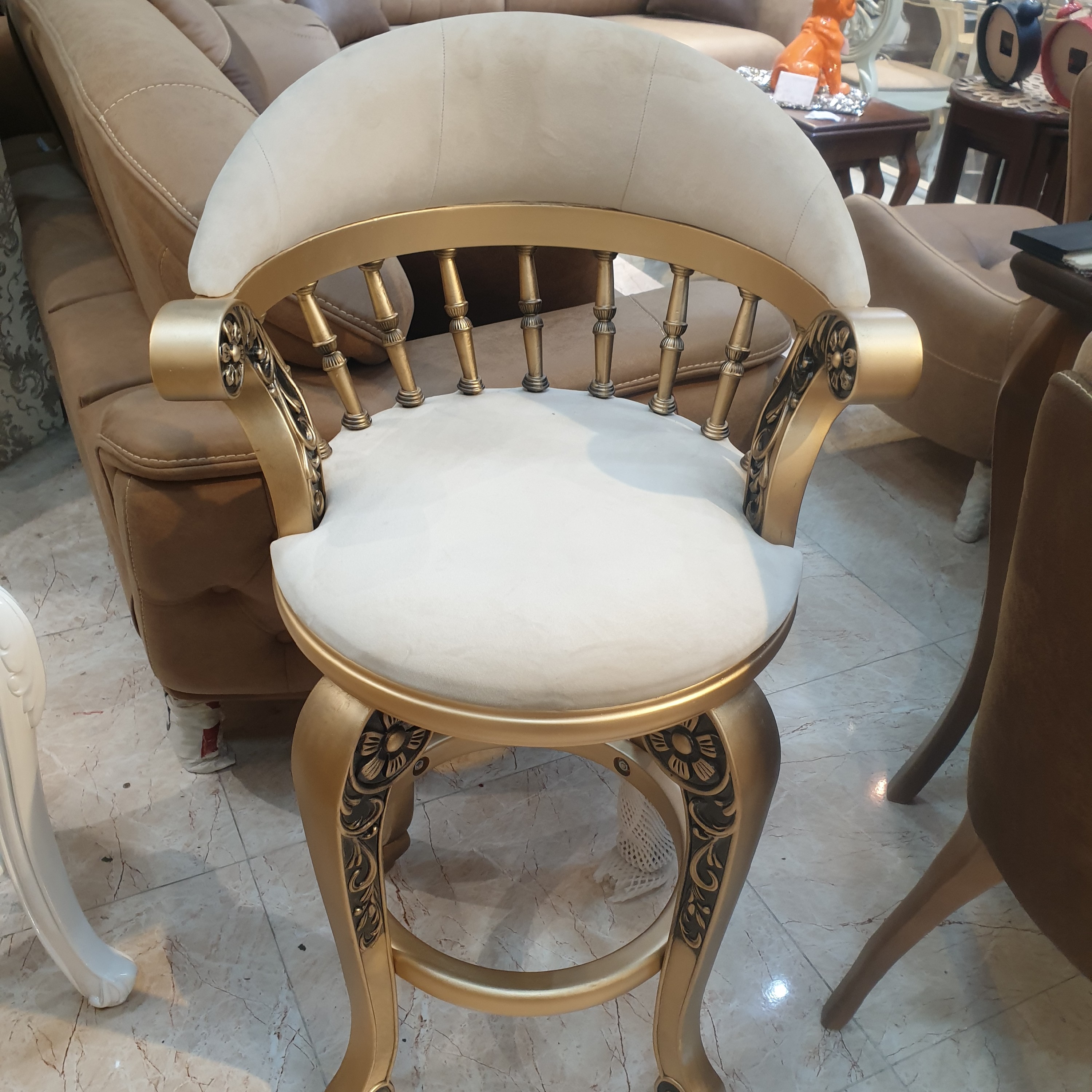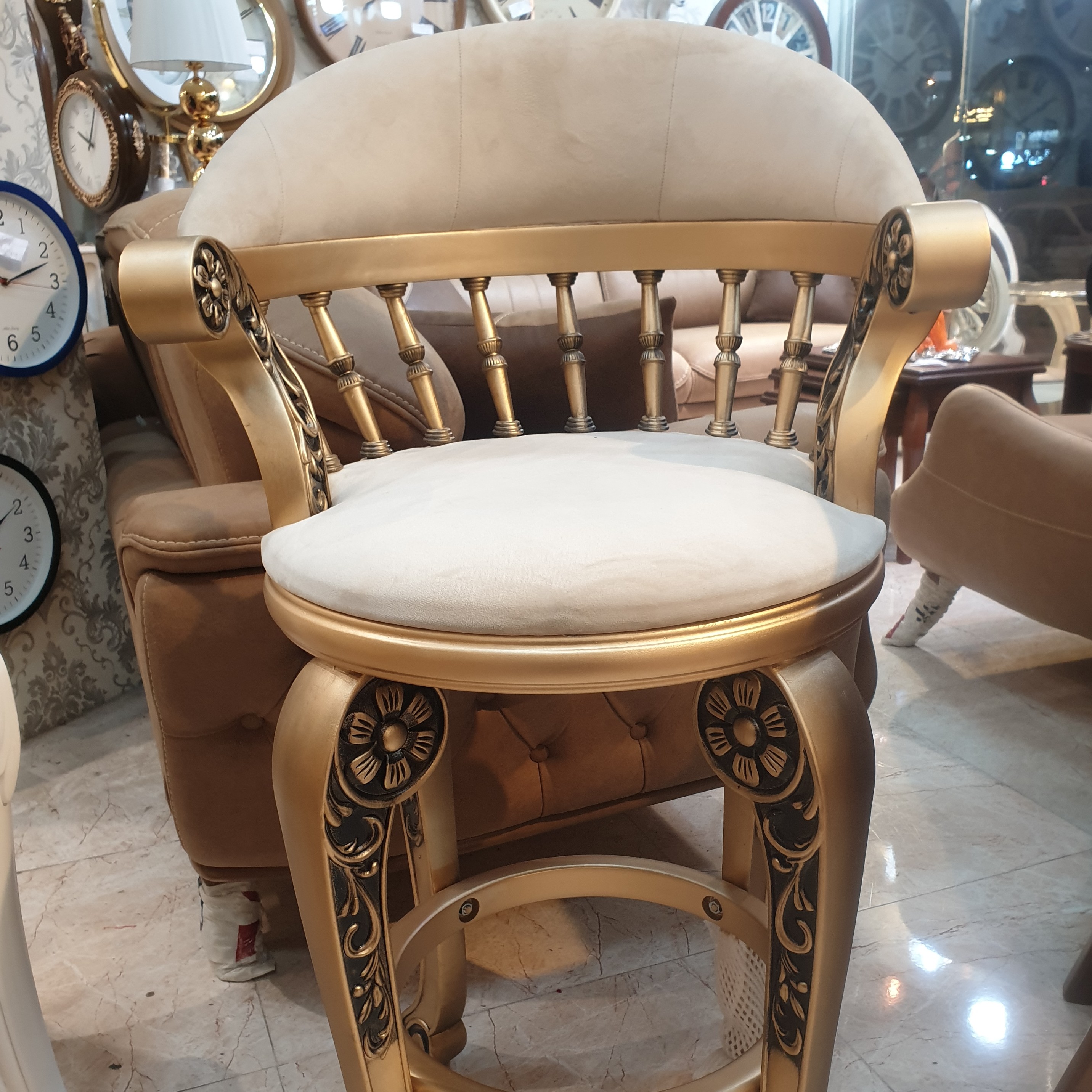 صندلی اپنی کانتر جزیره جدید دسته دار جنس پلمیر رنگ طلایی مات مبلمونسرا مدل 236060