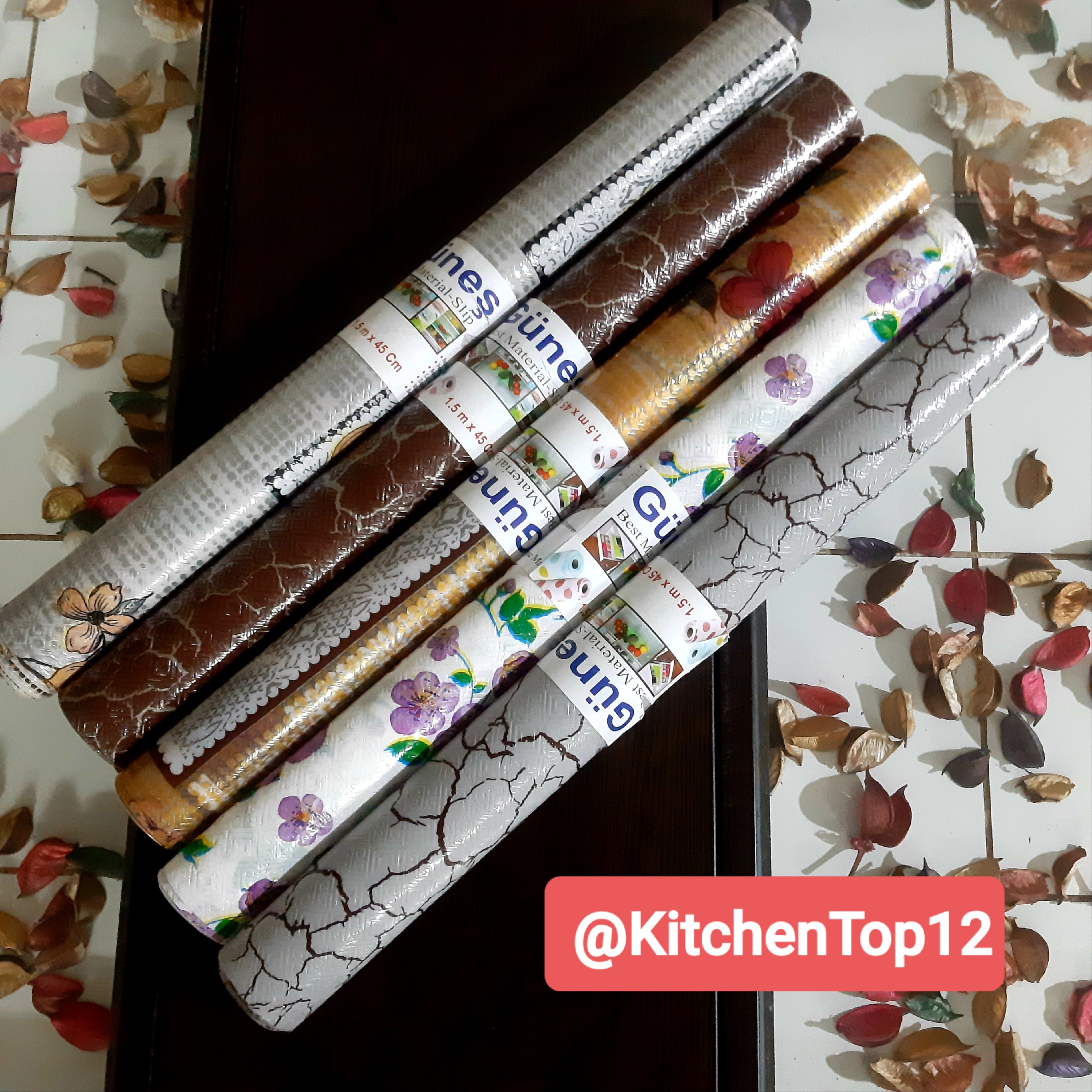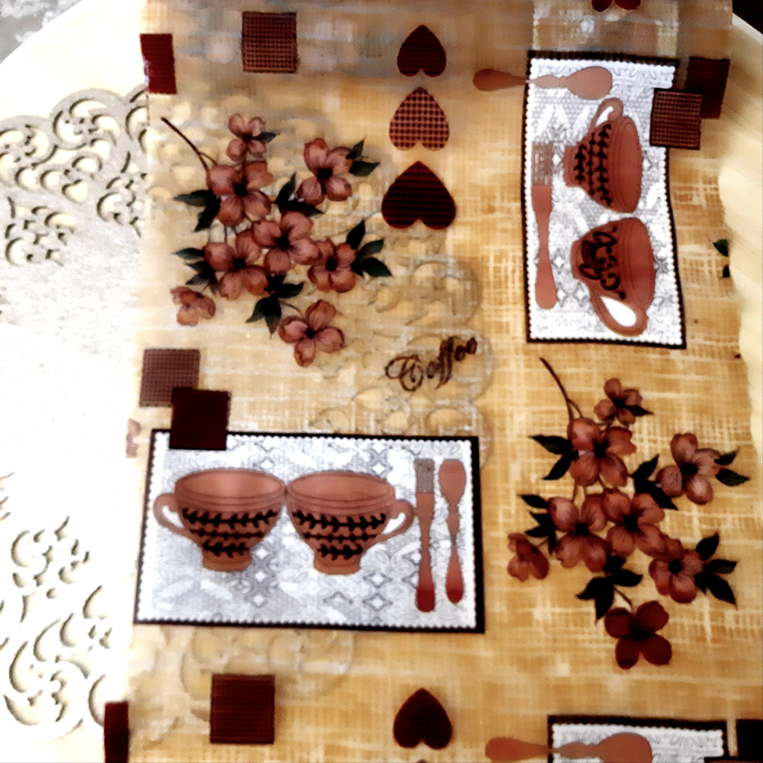 کفپوش یخچال و فریزر مدل رولی جنس ژلی طرح فنجان زمینه طلایی رنگ بسیار شیک و زیبا محافظ طبقات شیشه ای یخچال و جلوگیری از ضربه خوردن و خش خوردن شیشه