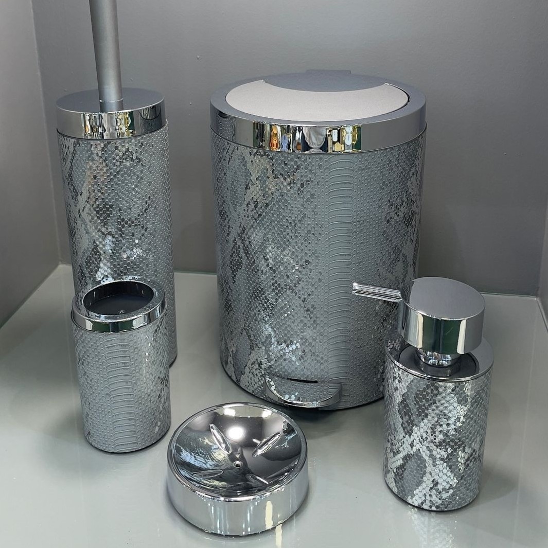 ست سرویس بهداشتی بتیس مدل چرمی طوسی کروم طرح پوست ماری مبلمونسرا مدل 266677