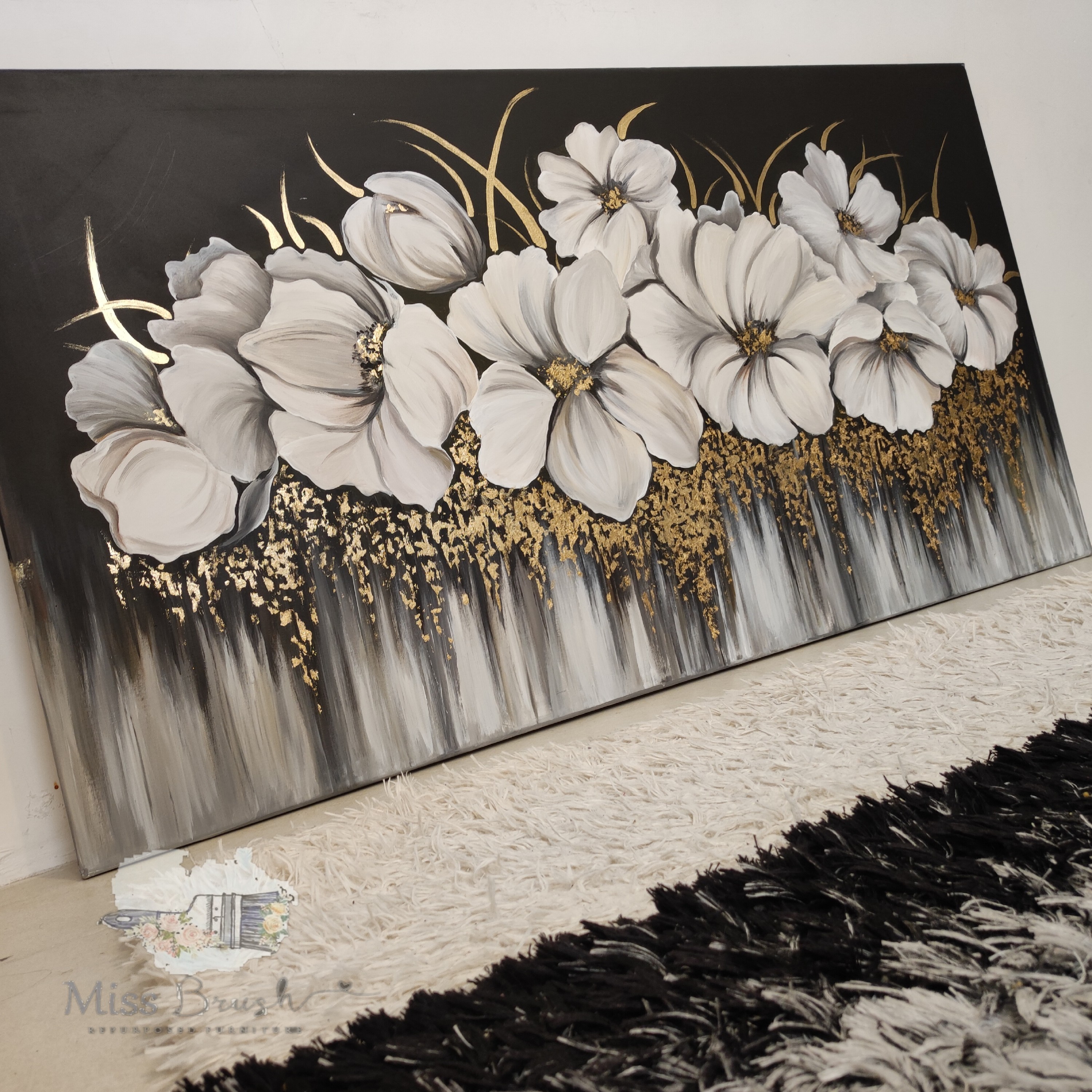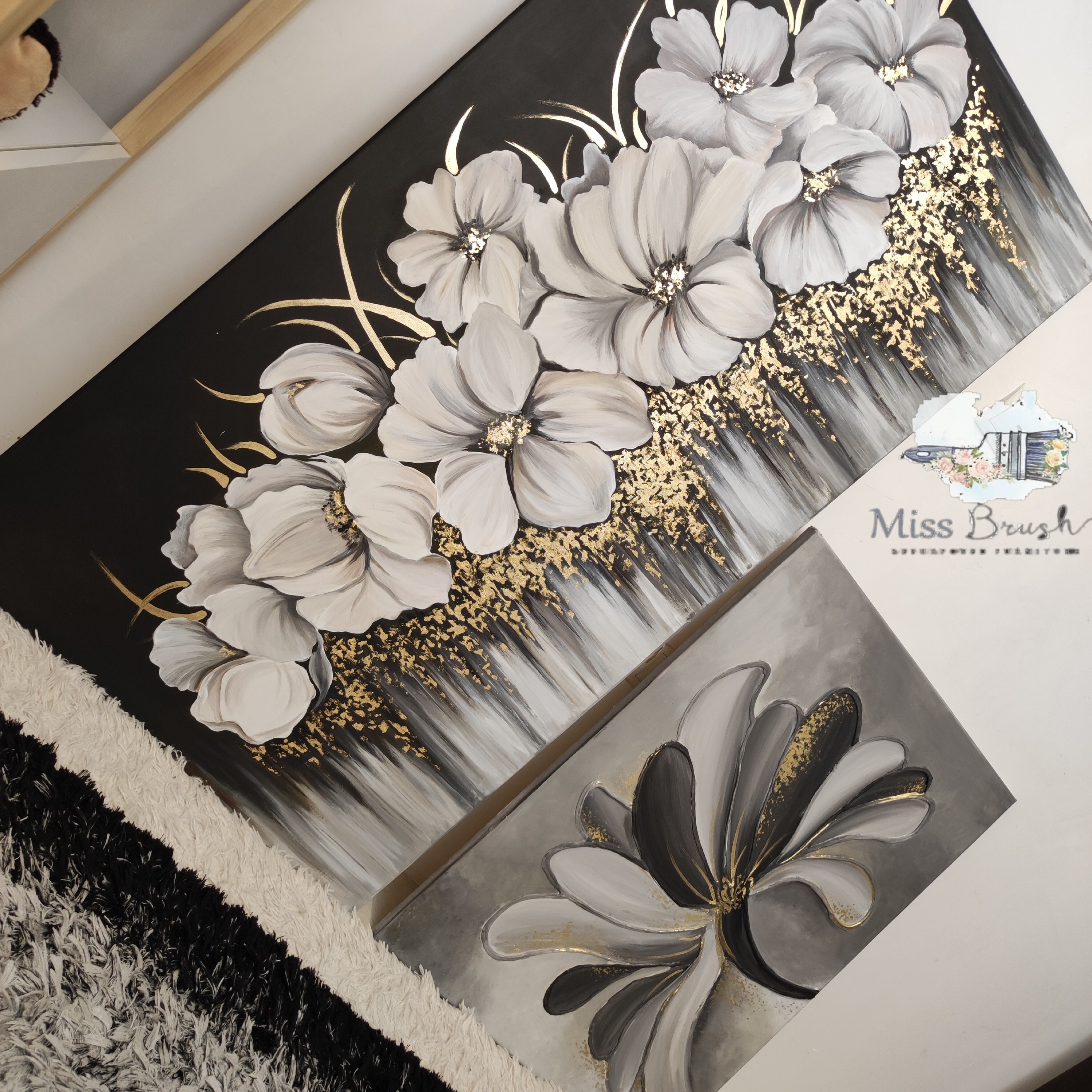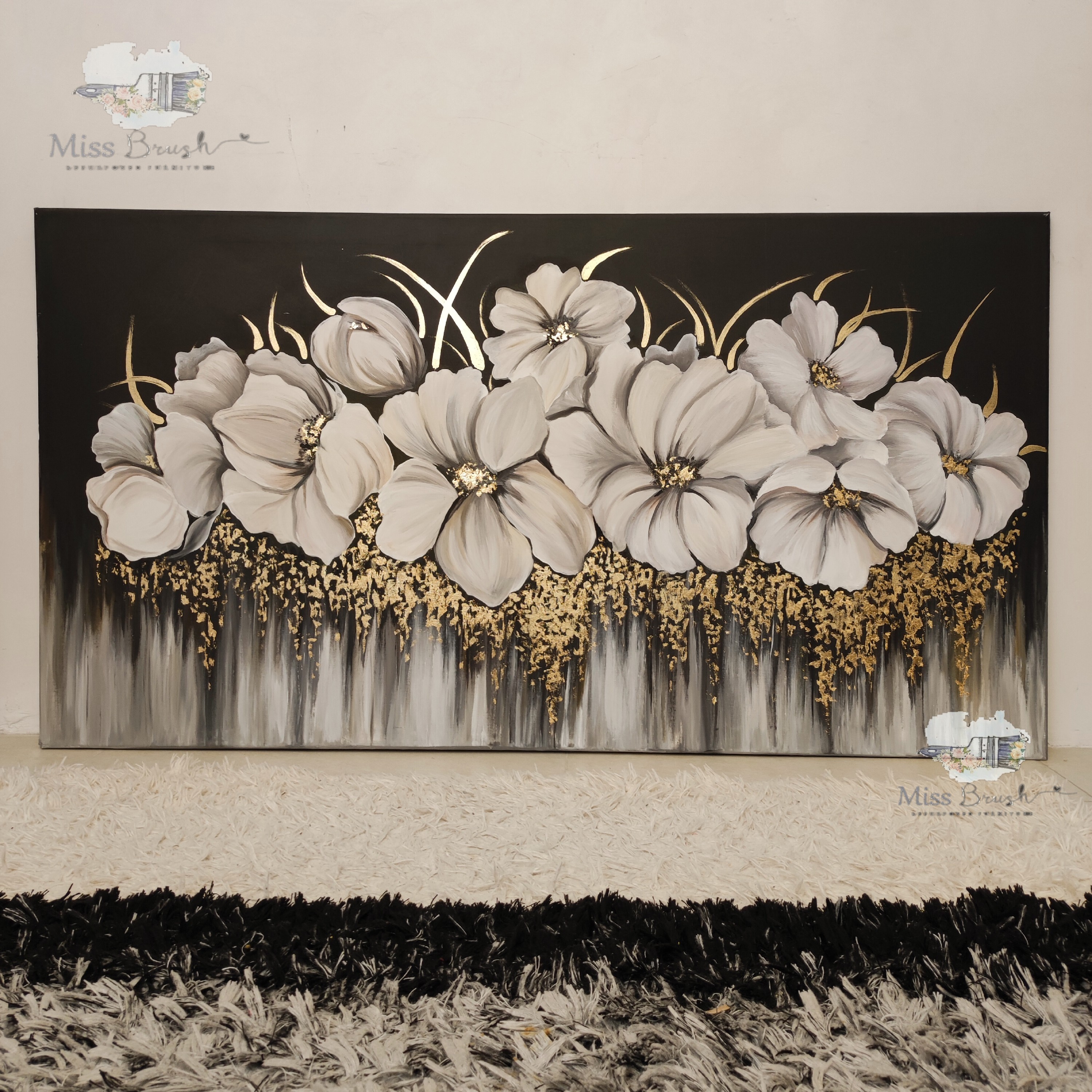 تابلو آبشاری با زمینه تیره و گل های روشن رنگ و سایز قابل تغییره مثلا همین کار ۴ رنگ. ازش اجرا شده