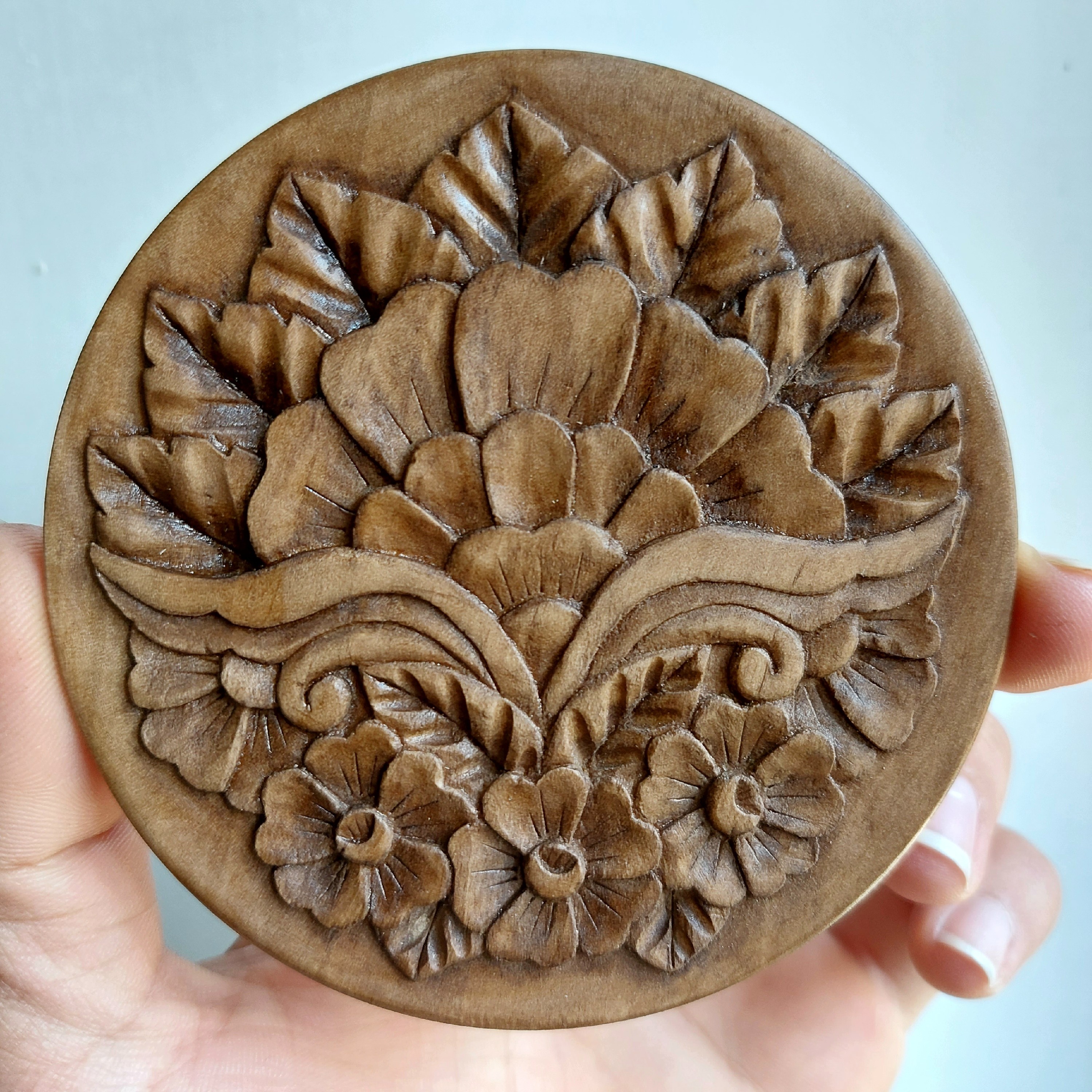 آینه چوبی منبت شده _ساخته شده از چوب گلابی _ تکنیک رنگ؛ پتینه کاری شده که حالتی خاص و قدیمی و دلنشین به کار میده