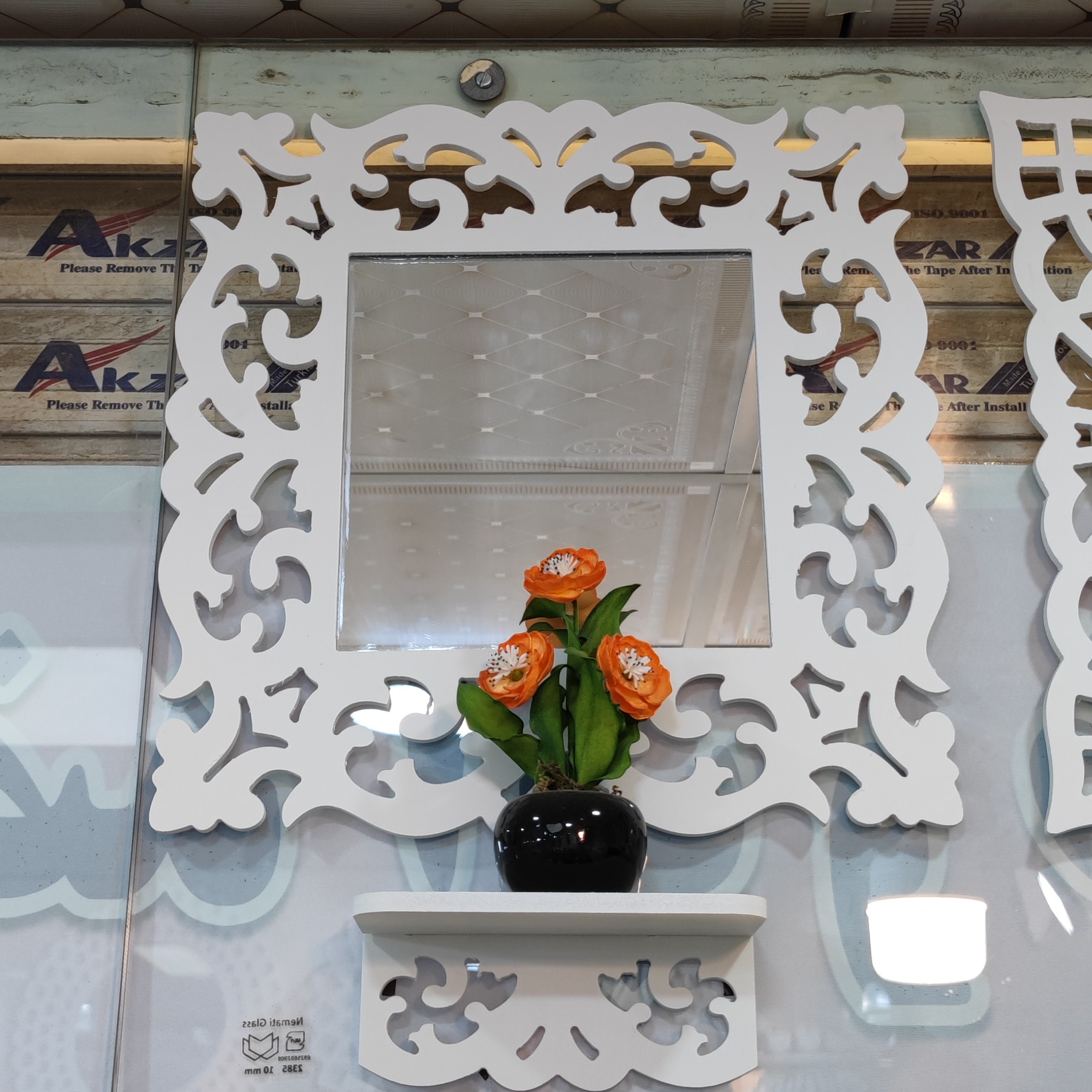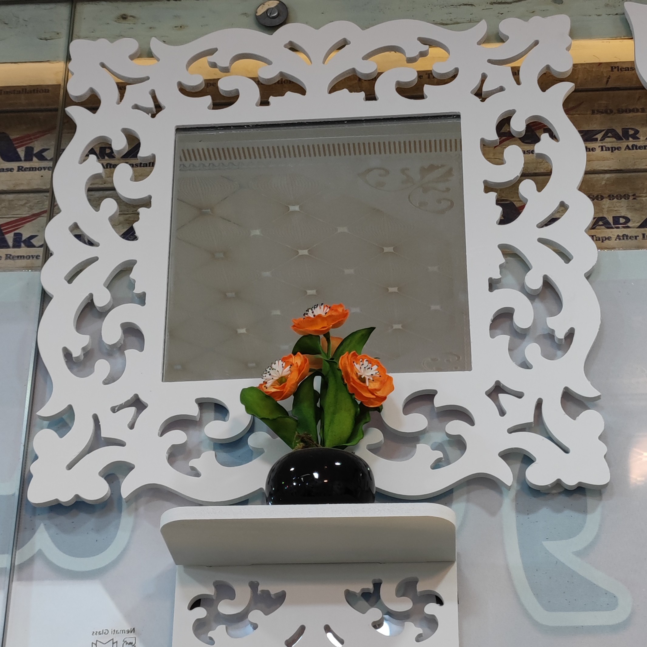 آینه کنسول شلف کوچک مربع حمام و توالت مبلمونسرا مدل 221127