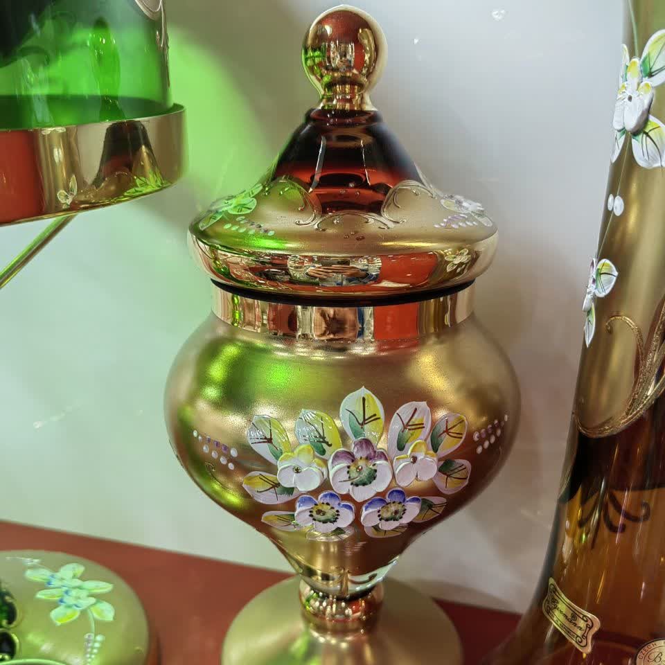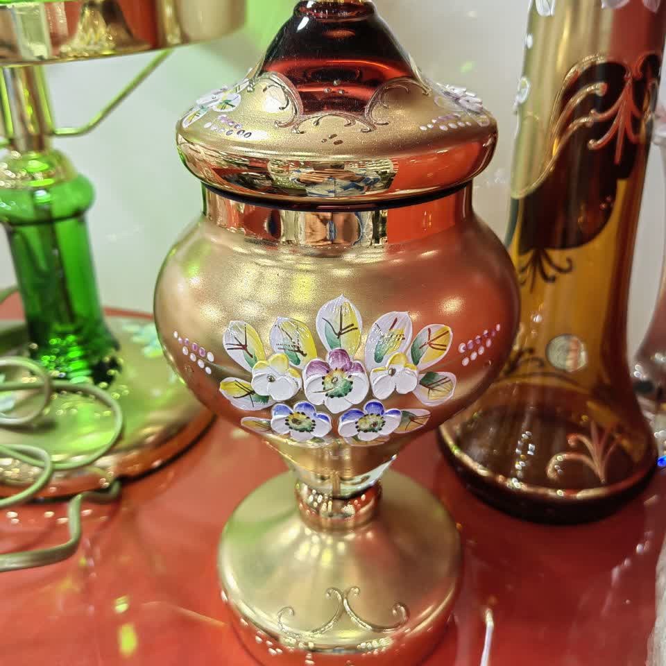 شکلات خوری اگرمن طرح عروس رنگ قرمز زیبا و چشم نواز خاص و شیک پر گل و طلاکوب ساخت کشور چک