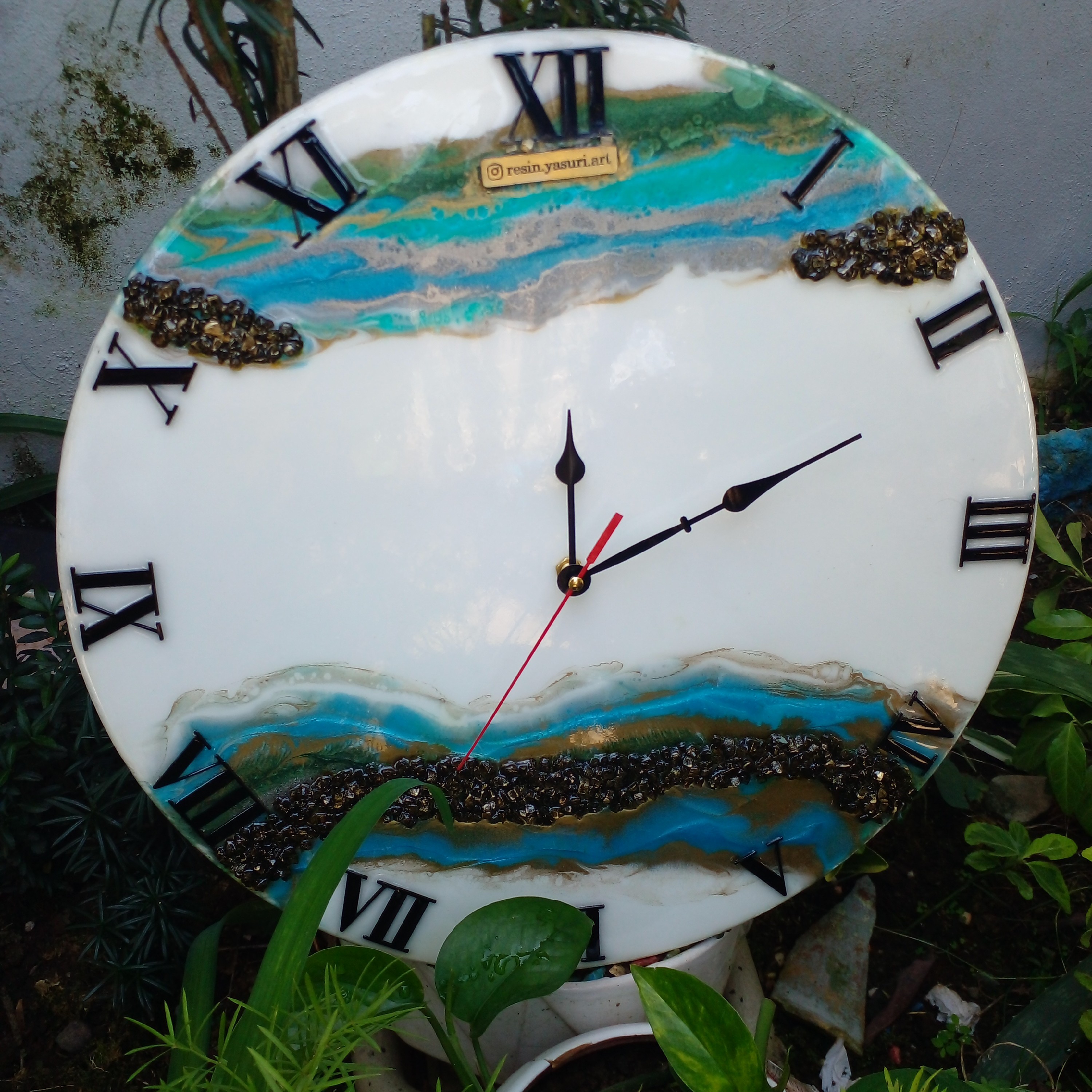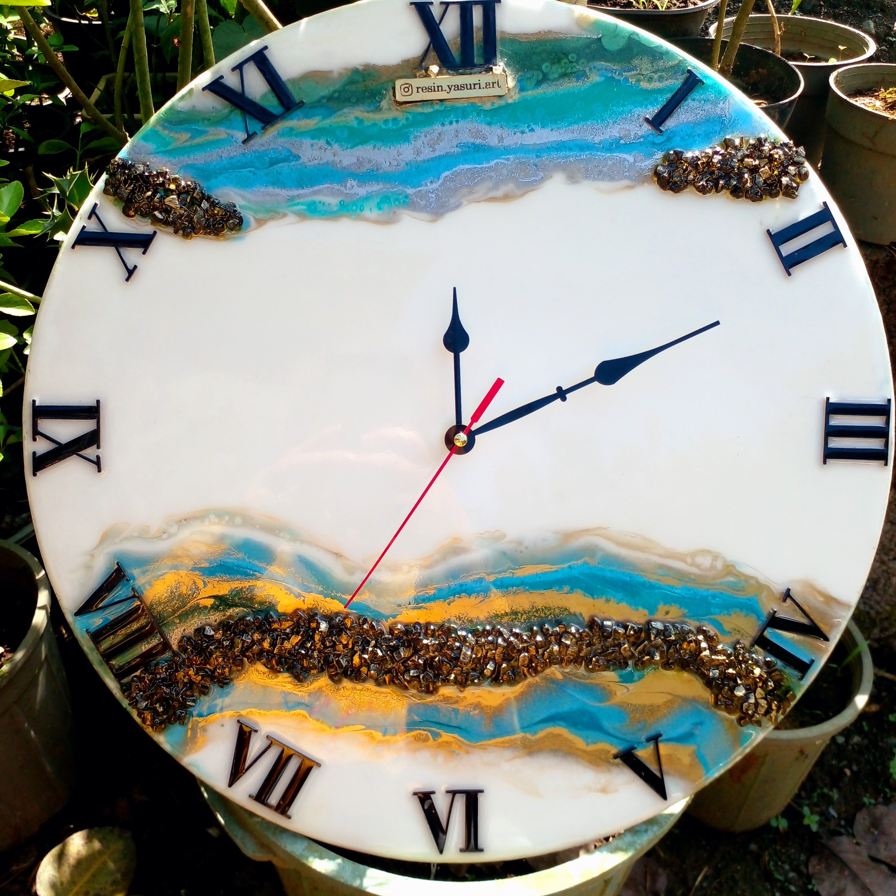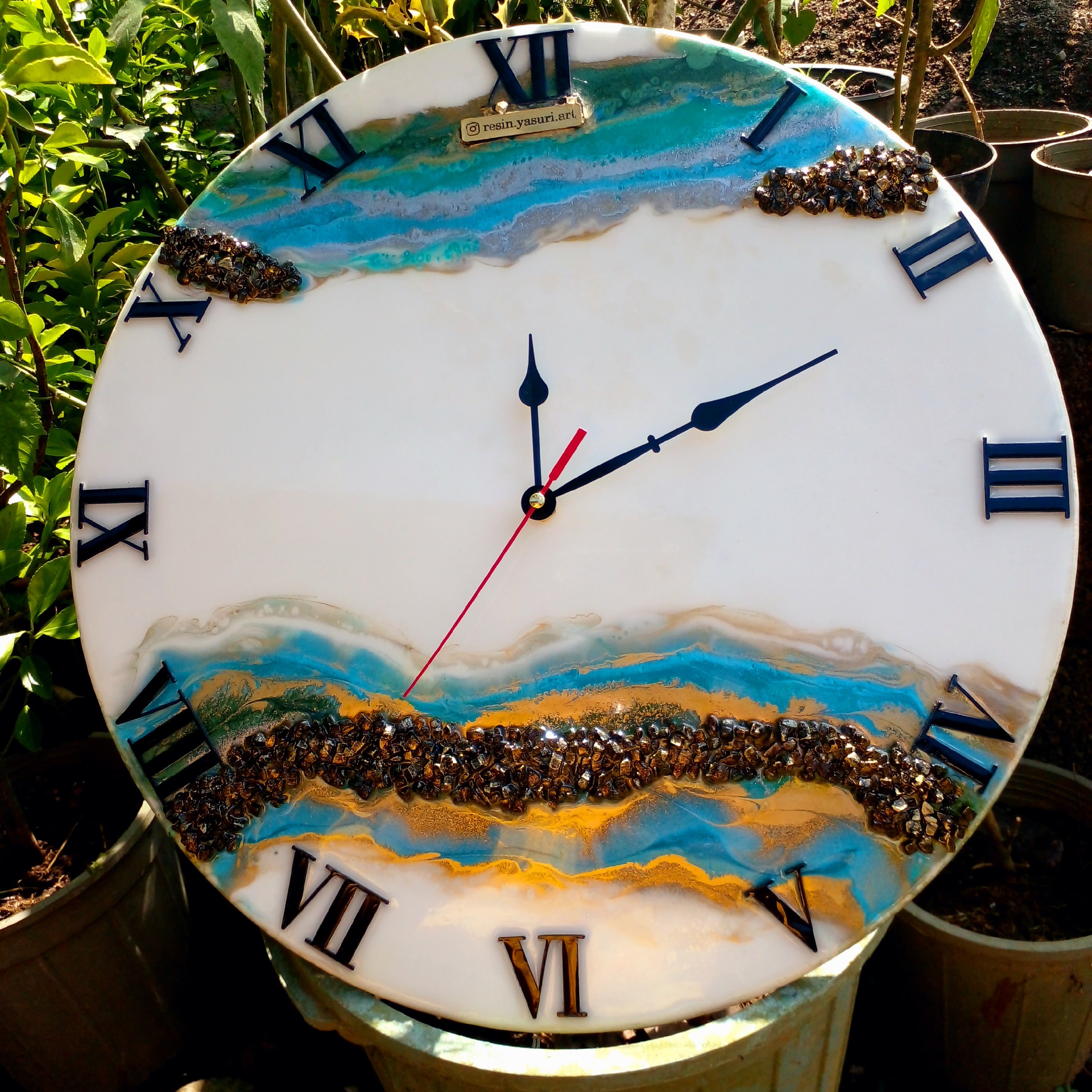 ساعت رزینی قطر ۴۰ کار شده روی چوب ام دی اف ۸میل با دو لایه رزین فوق شفاف و آینه ای کار شده پشت کار آویز داره که راحت رویدیوار نصب میشه کریستال طبیعی عقربه ها فلزی موتور ارامگرد و بیصدا قابل سفارش در رنگ دلخواه شما