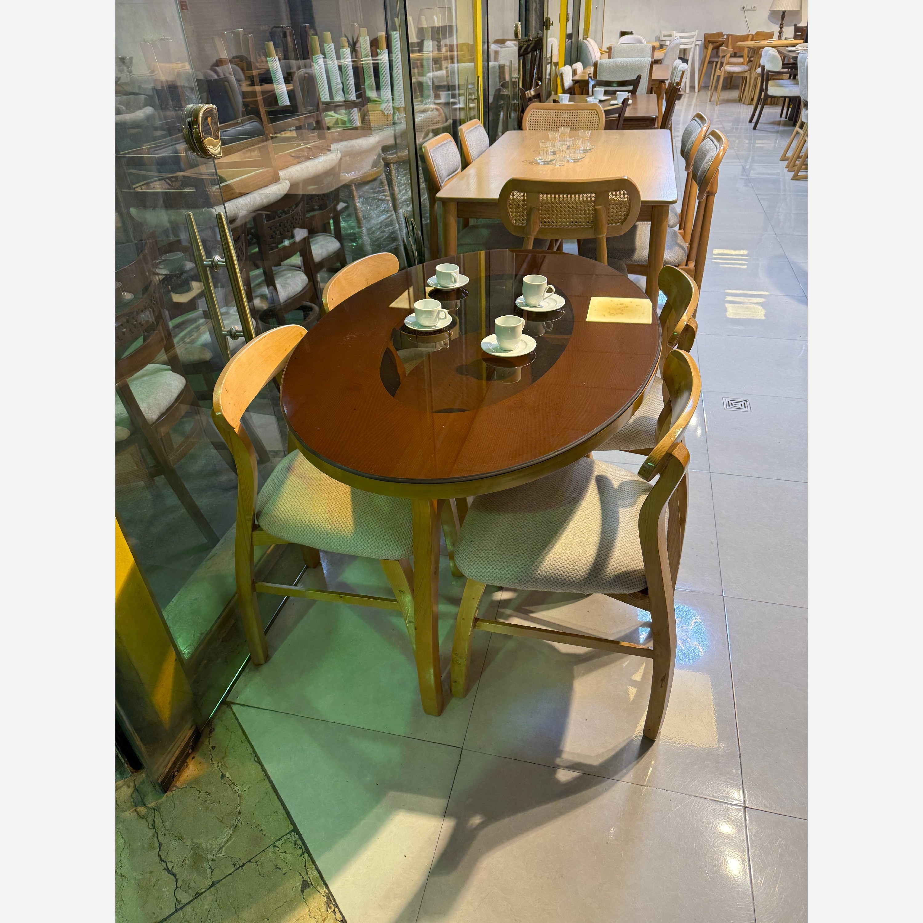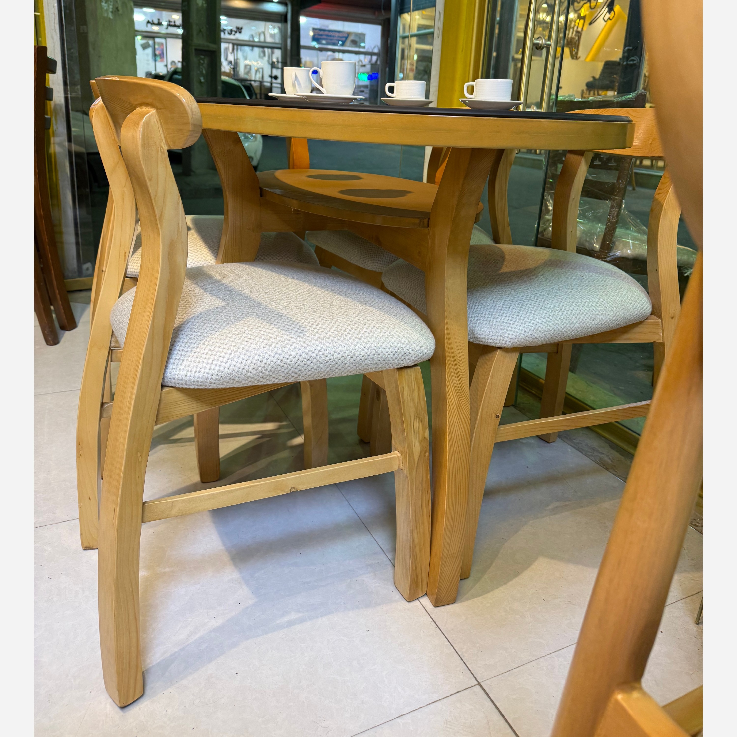 جنس پایه میز و صندلی چوب روس و جنس صفحه کار ام دی اف روکش راش است شیشهی 8 میل روش کار شده اسفنج صندلی ها اسفنج 20 کیلویی است ،جنس پایه میز و صندلی چوب روس و جنس صفحه کار ام دی اف روکش راش است شیشهی 8 میل روش کار شده اسفنج صندلی ها اسفنج 20 کیلویی است هزینه پسکرایه و باربری و اسنپ به عهده مشتری عزیز میباشد
