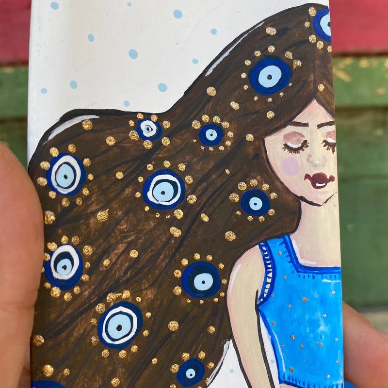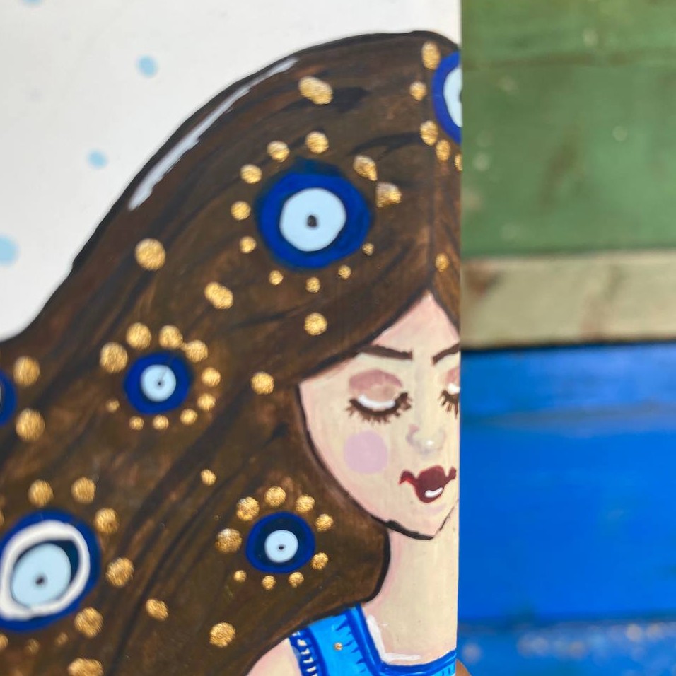 جاعودی سفالی دختر چشم نظر طراحی شده با رنگ اکریلیک ابعاد تقریبی 24 در6سانتیمتر قابل شستشو مبلمونسرا مدل 286028