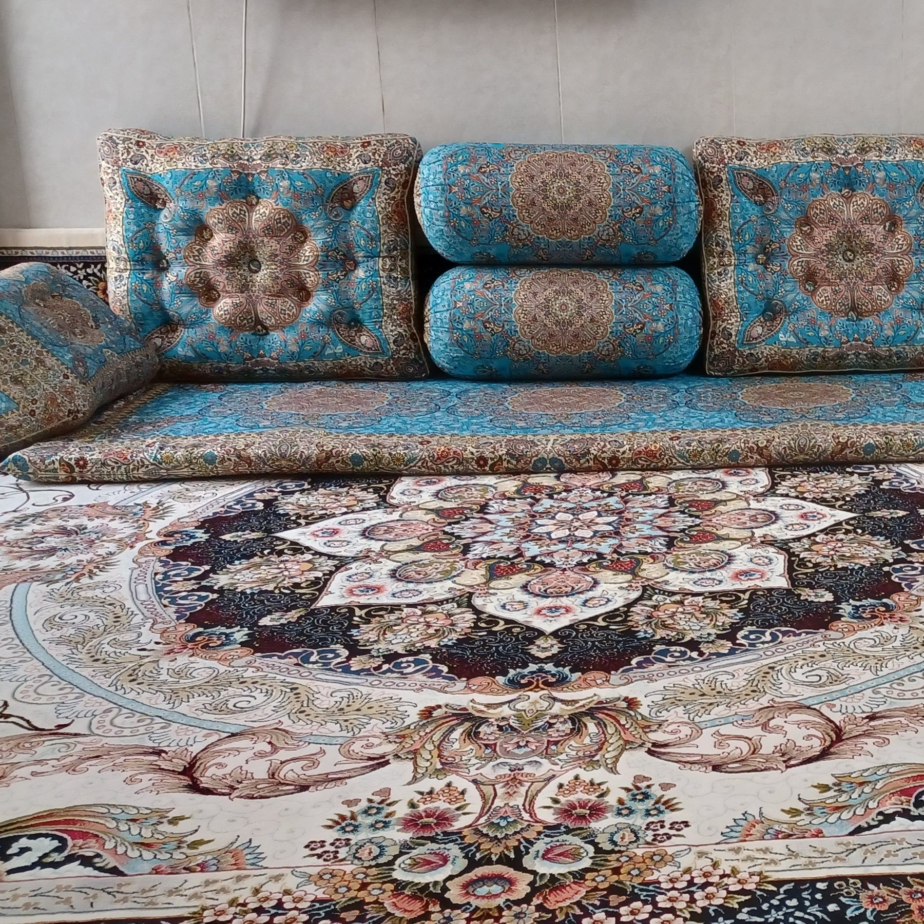 شاه نشین هفت تکه تراکم بالا ابی فیروزه ابکی افشاریه دومتری قابل شستشو با ارسال رایگان