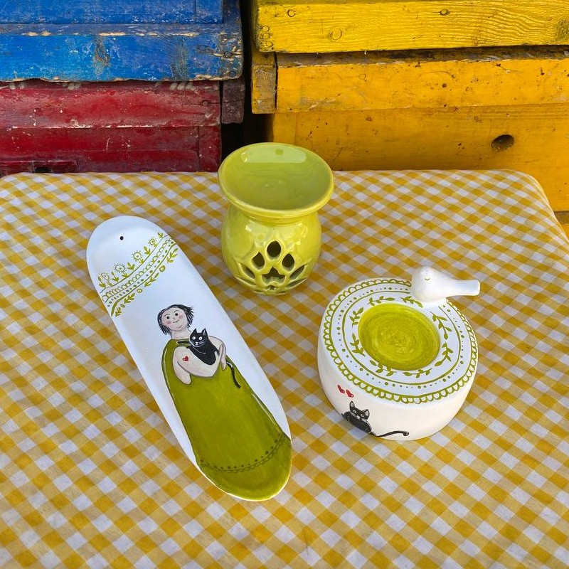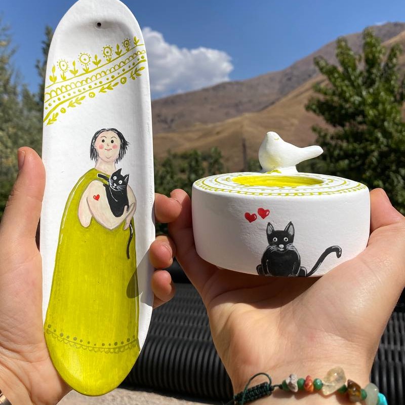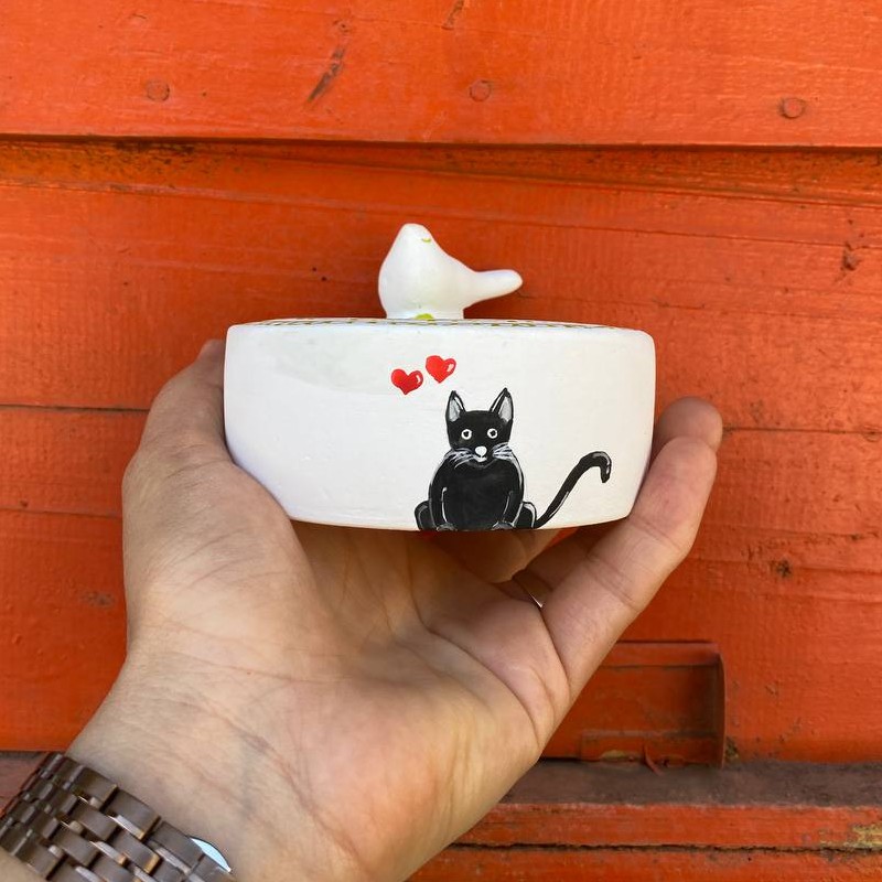 جاشمعی سفالی طرح گربه طراحی شده با رنگ اکریلیک ابعاد تقریبی 9در8سانتیمتر قابل شستشو مبلمونسرا مدل 284137