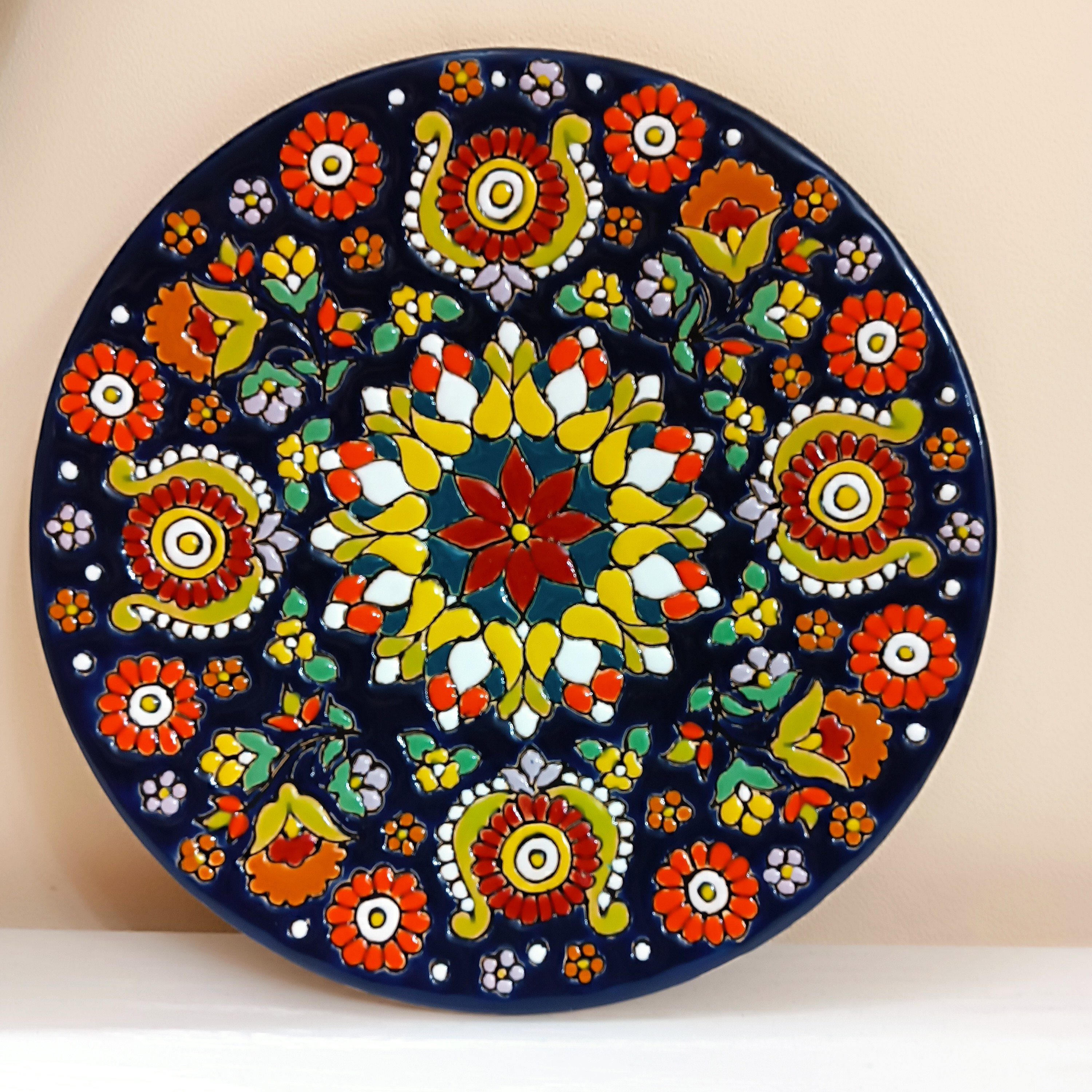 بشقاب دیوار کوب خوجل موجل مون 😍😍 طرح سنتی زمینه سورمه ای سایز ۲۰ سانت 💎💎💎💎💎💎💎 💎💎💎💎💎💎💎
