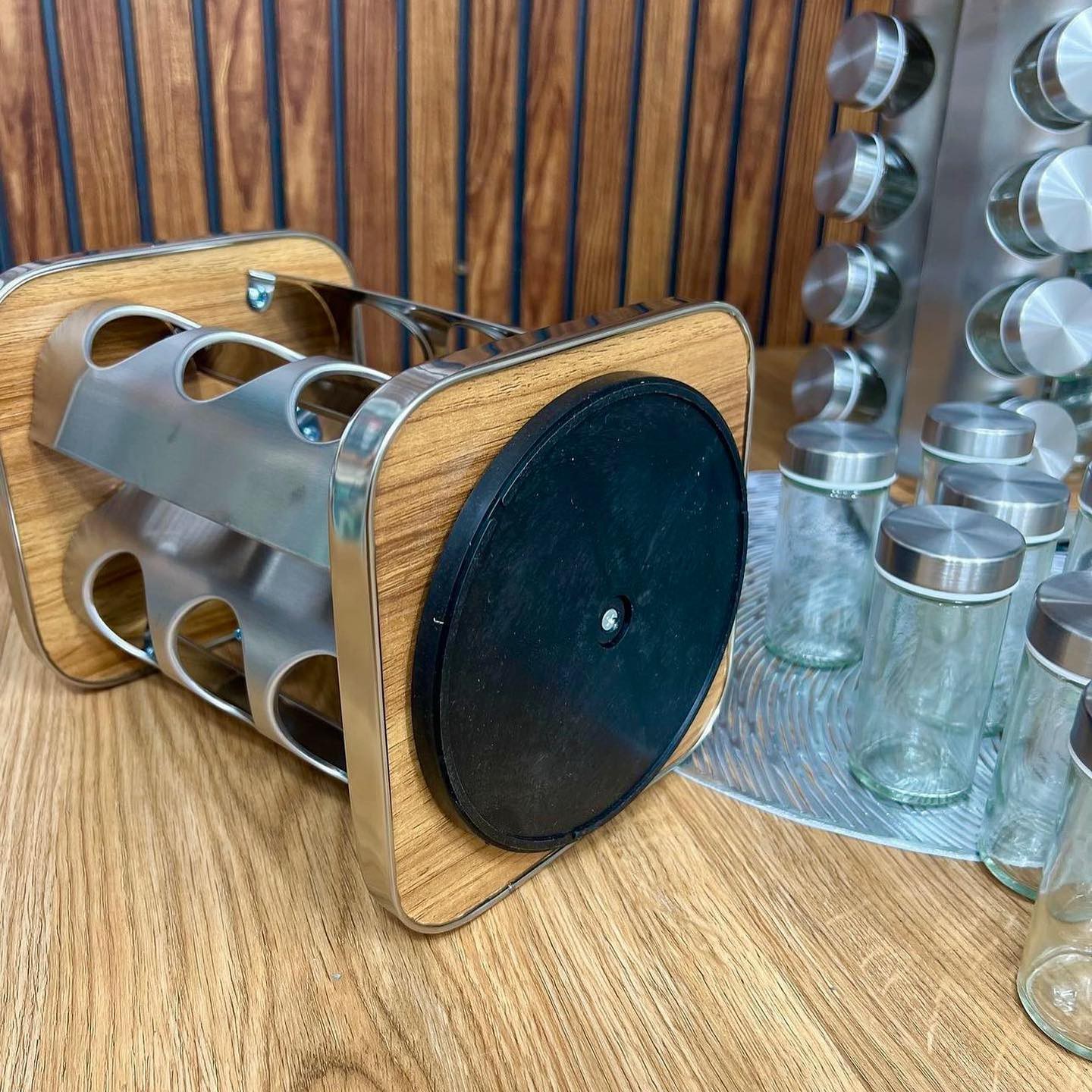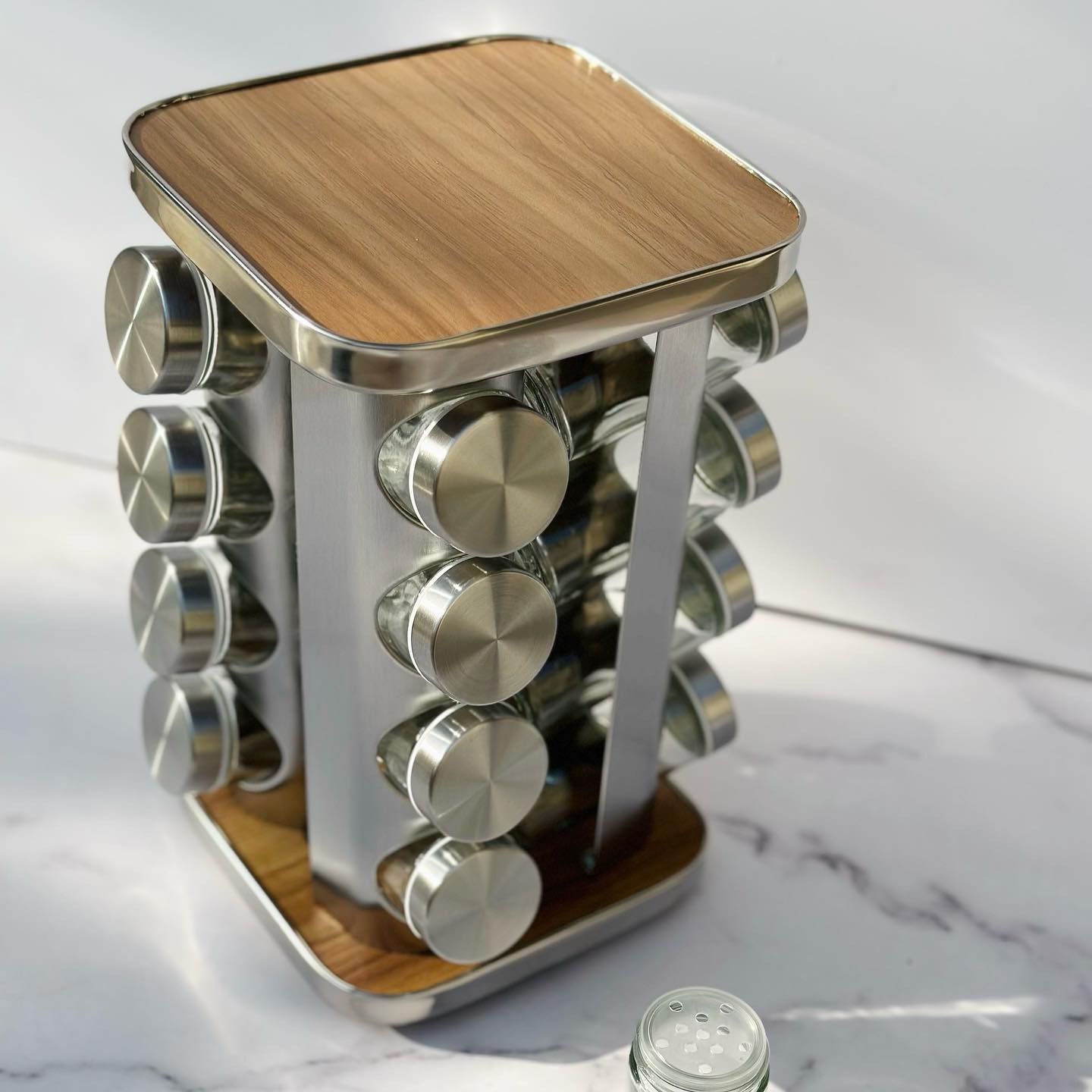 سرویس ادویه چرخان 12 عددی با جنس استند استیل با کفی بامبو مبلمونسرا مدل 295043