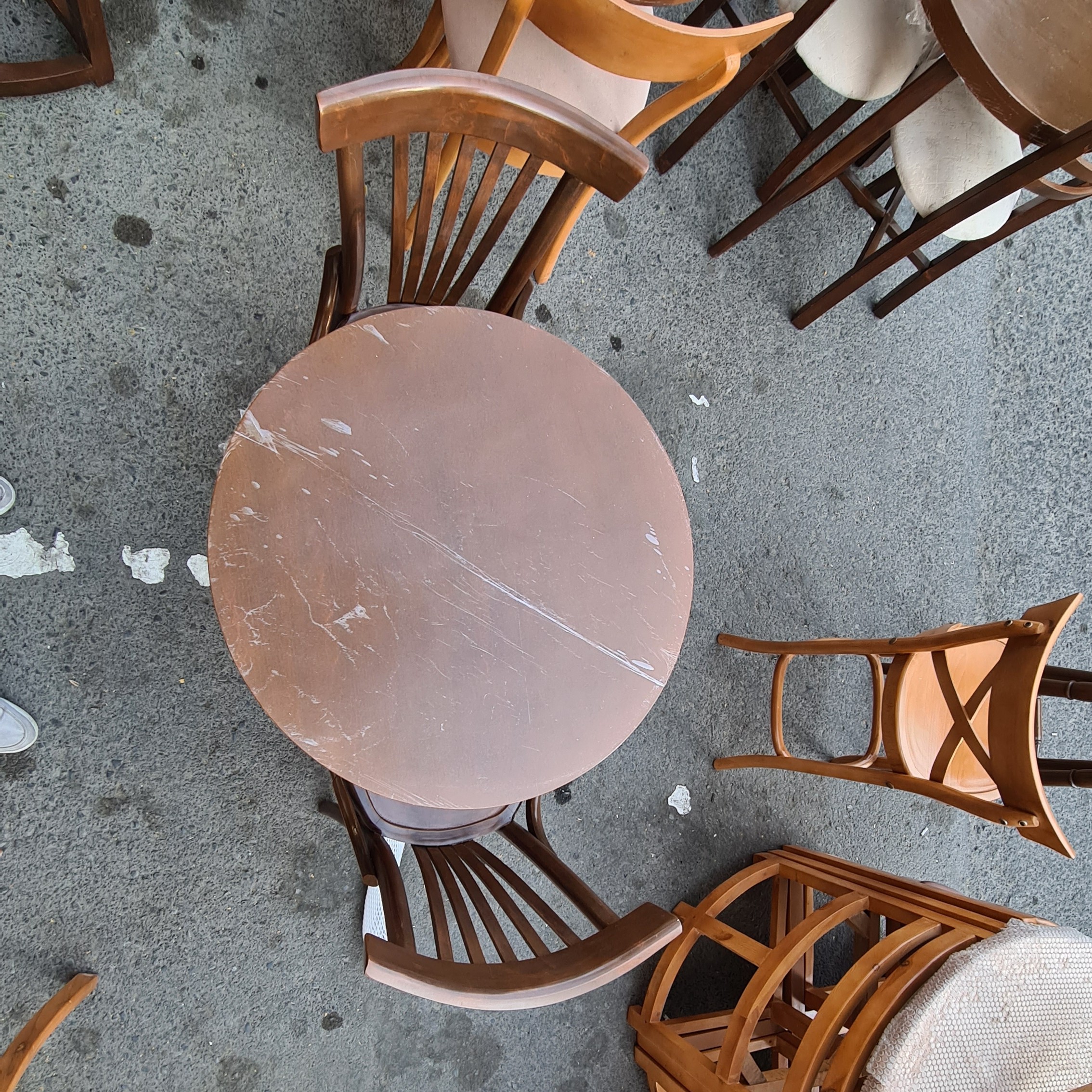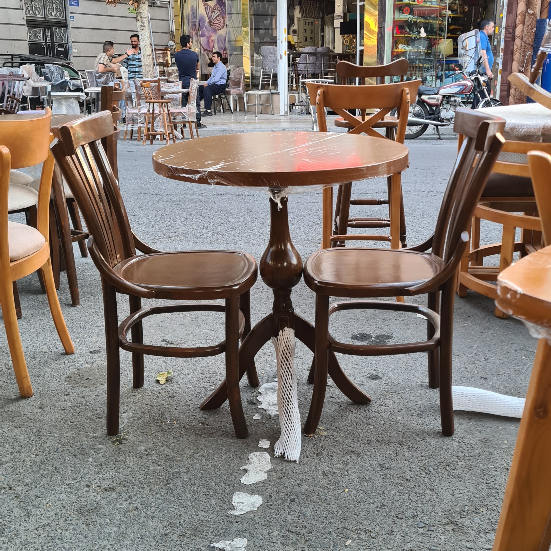 میز گرد پایه گلدونی و صندلی های لهستانی صفحه کار ام دی اف روکش راش پایه کار چوب توسکا جنس صندلی ها هم چوب توسکا قطر میز ۷۰ سانتیمتر هزینه و باربری و اسنپ به عهده مشتری عزیز میباشد